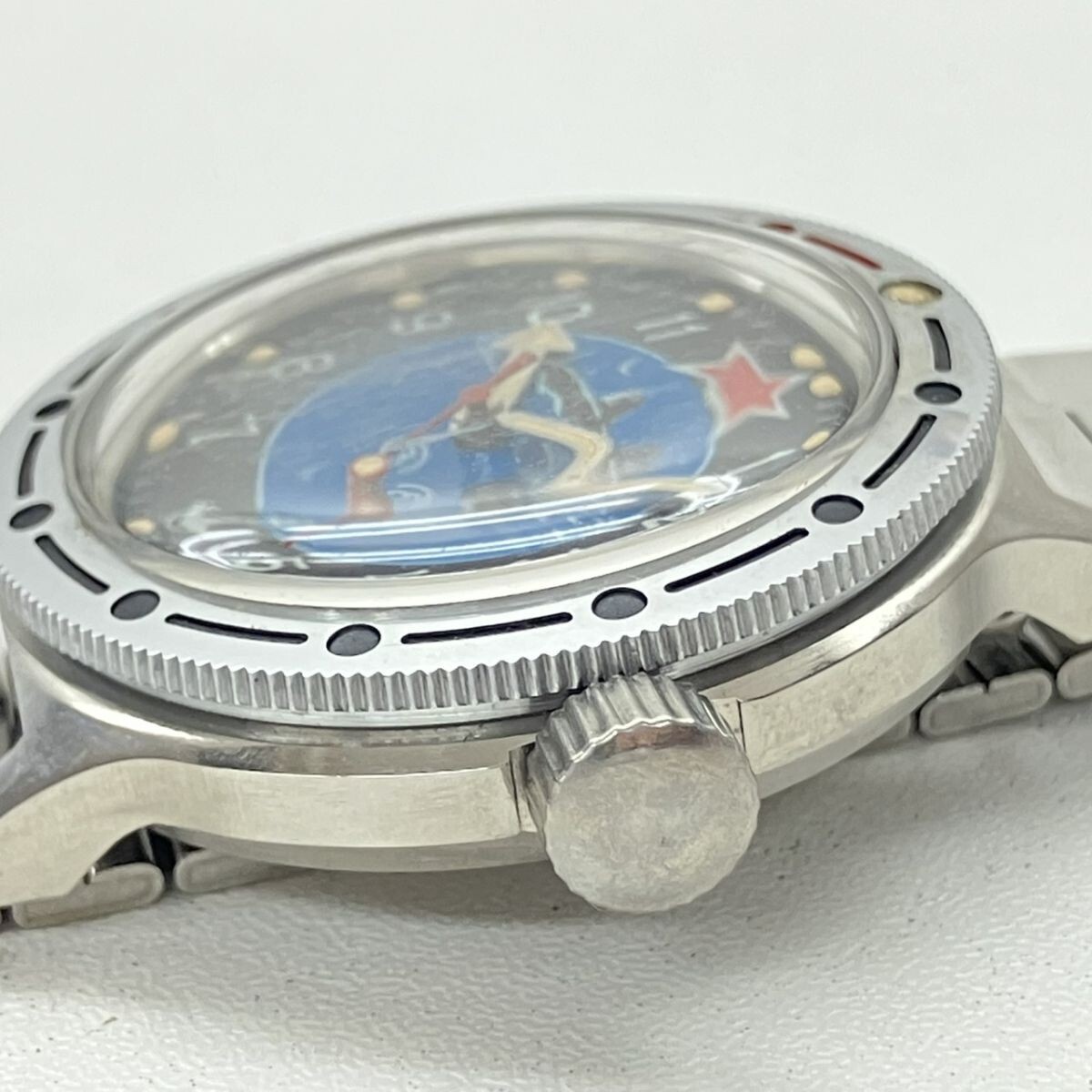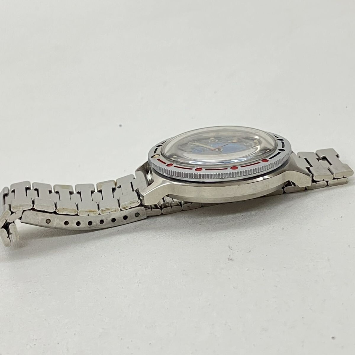 取り扱っている商品は未使用・未開封も含め、全て一度は人の手に渡った一点ものの中古・ジャンク扱いでの商品です。 当方素人ですので肉眼で確認できる簡易的な検品、採寸、および簡易梱包となります。 ※稼働の記載につきましては秒針等の確認のみとなり、全体の動作を保証するものではございません。 また、出品時の中古品の動作状況となりますので、予めご了承の上でご入札ください。 不動の表記につきましてはクォーツ式のムーブメントの場合、動作未確認の状態となります。 電池交換後、不具合があった場合でも返金、返品の対象とはなりませんので、予めご了承くださいますようお願い致します。 細かな日差、オーバーホール状況、社外パーツの使用に関しては保証しかねますので、ご理解いただけた上でのご入札をお願い致します。 上記を踏まえた上で中古品、ジャンク商品として出品させていただいておりますので、全てご理解いただけた上でのご入札をお願いいたします ------------------------------------------------------------------------- 【サイズ】 直径約4cm 腕回り約18.5cm 【付属品】 画像参照 【稼働状態】 不動 【その他状態】 傷や汚れあり ベゼル動作OK ------------------------------------------------------------------------- 画像にあるものが全てです。 他詳細は画像にてご判断ください。 ※目立つ傷や汚れを中心に写真を撮っておりますが、画像に写りきっていない傷等がある場合もございます。予めご了承ください。 ※商品を多数出品している関係で、稀に商品説明や画像に誤りがある場合がございます。予めご了承ください。 こちらのページをご覧いただく際は、商品説明文と掲載している画像の全てを確認いただいた上でご入札ください。 | |||||||