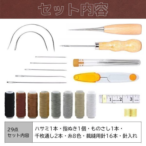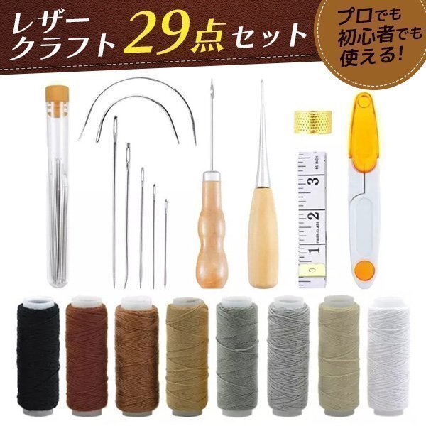 ★レザークラフト 工具セット 裁縫 29点セット 手縫い 革工具 レザー 糸 針 革 縫い針 DIY工具 縫製キット