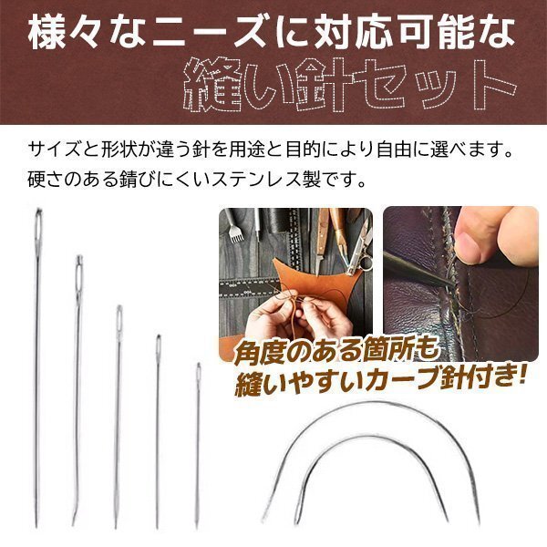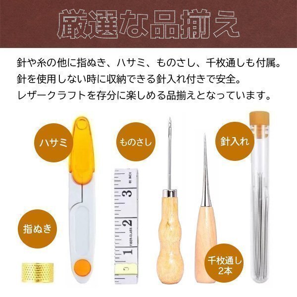 【厳選品揃え】針糸などのほか、ハサミ、尺、千枚通しなども付属、針入れまでも付き、針を使用しないとき安全に収納するところになる。レザークラフトを悩みなくお楽しみできる。