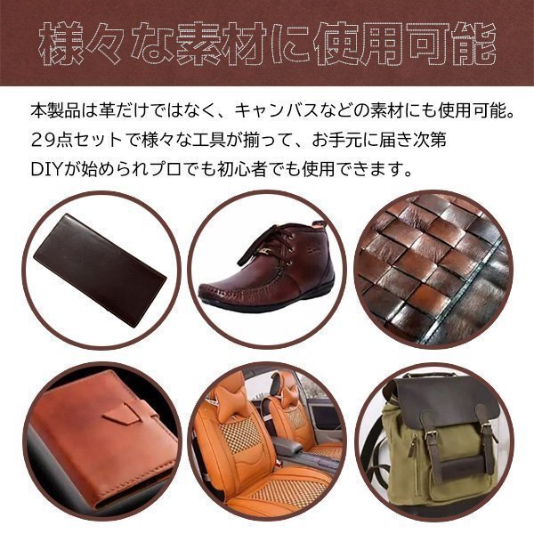 【汎用性高い】本製品は、革だけではなく、革、キャンバスなどの素材にご使用可能。29点セットで、様々な工具が揃って、お手にお届け次第、早速DIY開始でき、職人にも初心者にも最適。