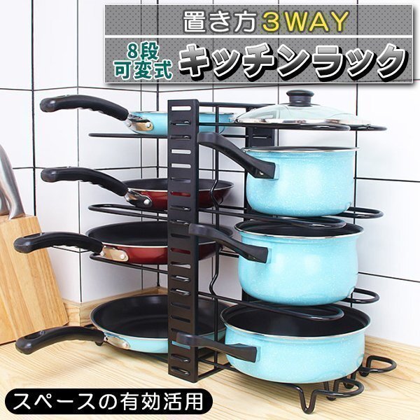 キッチンラック 8段 鍋 フライパンラック シンク下 キッチン収納 収納 ラック 鍋ふたスタンド フライパン収納 縦置き 横置き スタンド