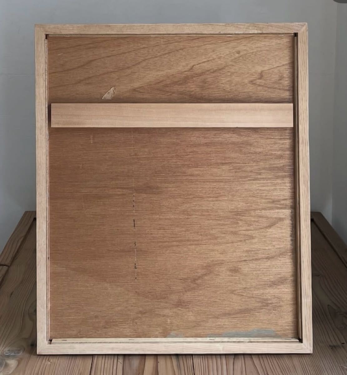 背面の横板にビスを引っ掛けて壁掛け可能です(ビス付属)