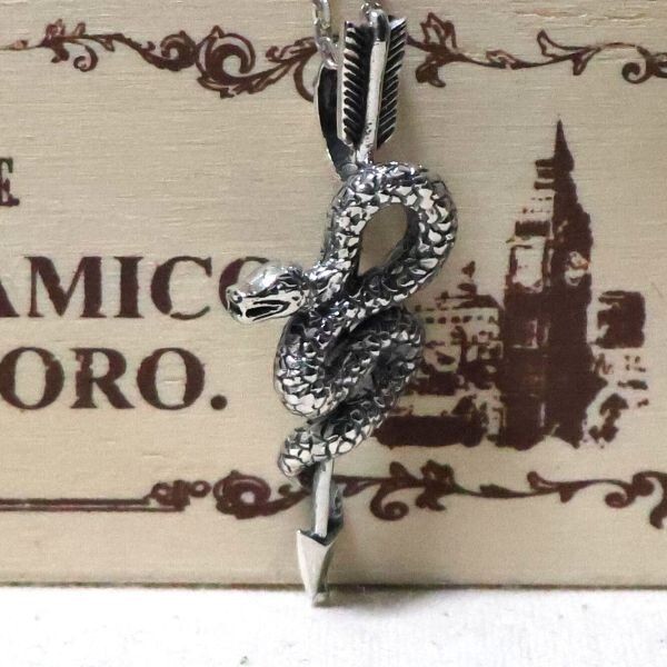 このシルバー925ペンダントは、蛇と矢を組み合わせたユニークなデザインが特徴です。蛇は古来より再生と知恵の象徴とされ、矢は目標達成や勝利を意味するモチーフとして知られています。この二つを融合させたことで、身に着ける人に強さと幸運をもたらし、人生の成功へと導いてくれるでしょう。 高品質なシルバー925を使用しており、輝きと耐久性に優れています。シンプルながらも存在感のあるデザインは、カジュアルにもフォーマルにも合わせやすく、幅広いスタイルにマッチします。さらに、幸運の象徴である蛇と矢が、持ち主をポジティブなエネルギーで満たしてくれることでしょう。 特別なギフトとしてもおすすめ。自分へのご褒美にも、大切な人へのプレゼントにもぴったりの一品です。 上質なシルバー925を使用したペンダント。シルバーの白いキラメキと洗練されたデザインで、日常使いから特別な日まで幅広くお楽しみいただけます。 プロフィールの確認お願いします。 ノーブランド商品なのでブランド品の様に高額ではなく、シルバーの価値に見合った価格で販売させて頂いています^^ ★商品詳細★ ・商品:ペンダントトップ(TOP) ・商品番号:SH0764na ・材質:シルバー925 ・重量:約7.9g ・サイズ:約45.8mm×18.8mm ※バチカンを含んだ全体の長さ ・バチカン内径 約7.4mm×3.4mm 商品はTOPのみの販売となりますので、写真のチェーンをご希望あれば、同梱条件で特別価格にて販売させて頂きます。 ★購入時の保障について★ お送りした商品が商品詳細記載と違いがあれば、全額返品返金にてさせて頂きます。 万一郵送時にトラブルがあった場合にも、責任をもって対応させて頂きます。 ご安心して購入ください。 #首飾り #首飾 #ネックレス