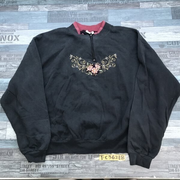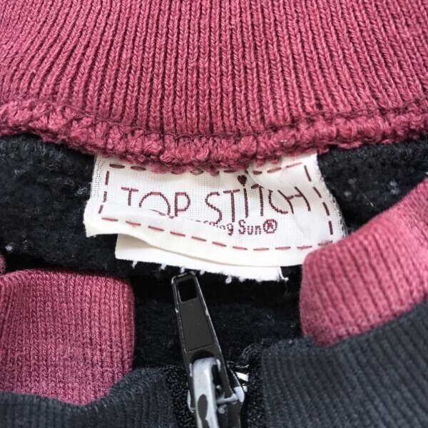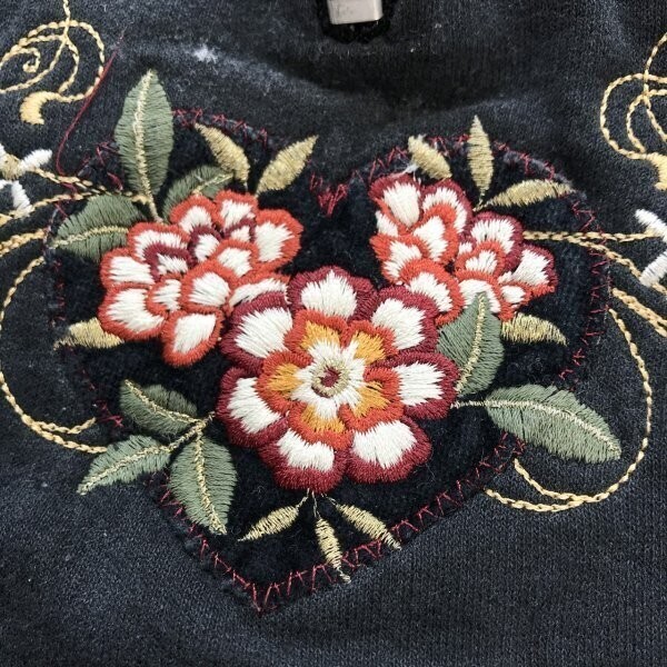 top stitch BY MORNING SUN レディース 裏起毛 花刺繍 ハーフジップ トレーナー 黒 です。