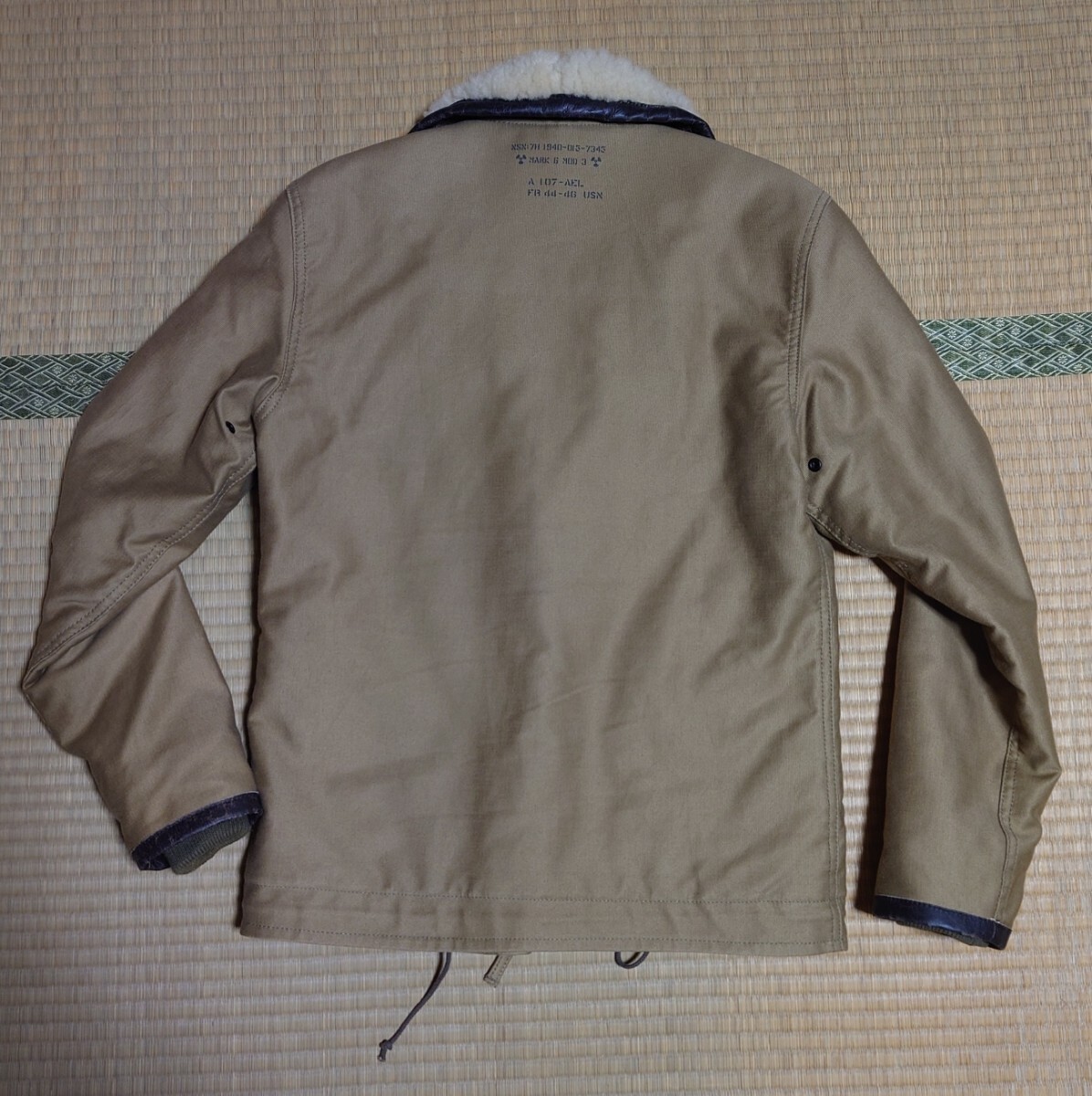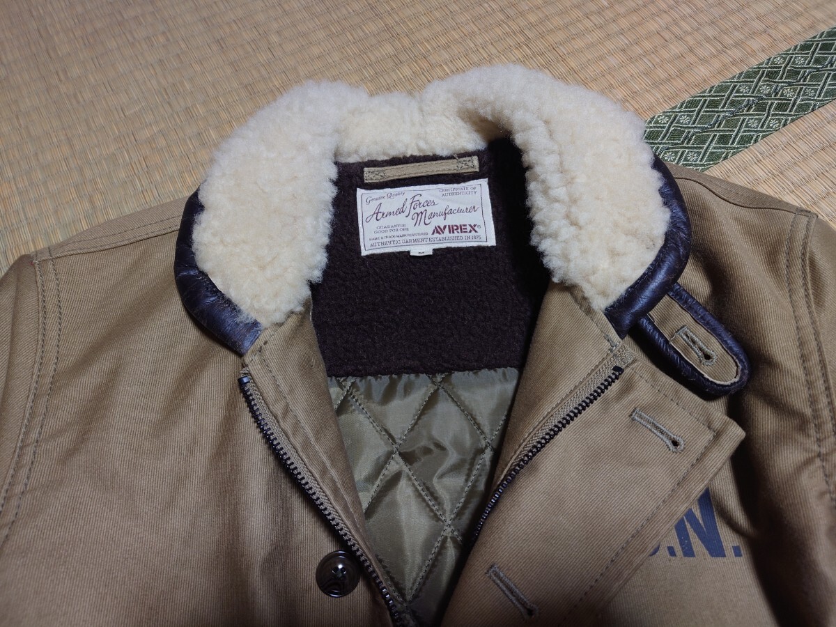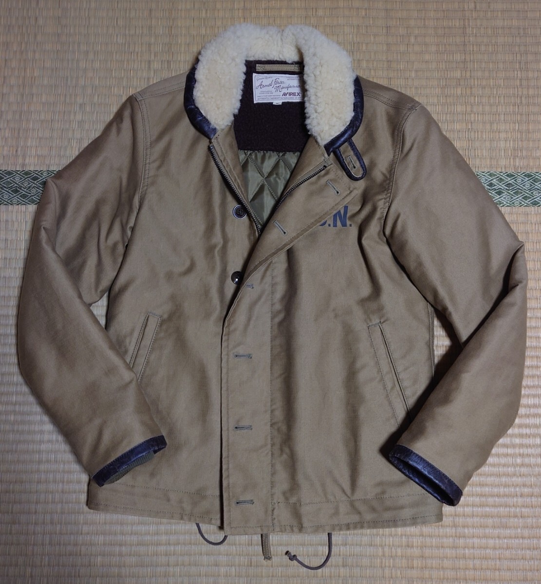 AVIREXのN-1デッキジャケットです。袖、襟周りをレザーであしらった贅沢な使用です。定価53000弱でした。傷みもない新品に近い状態です。