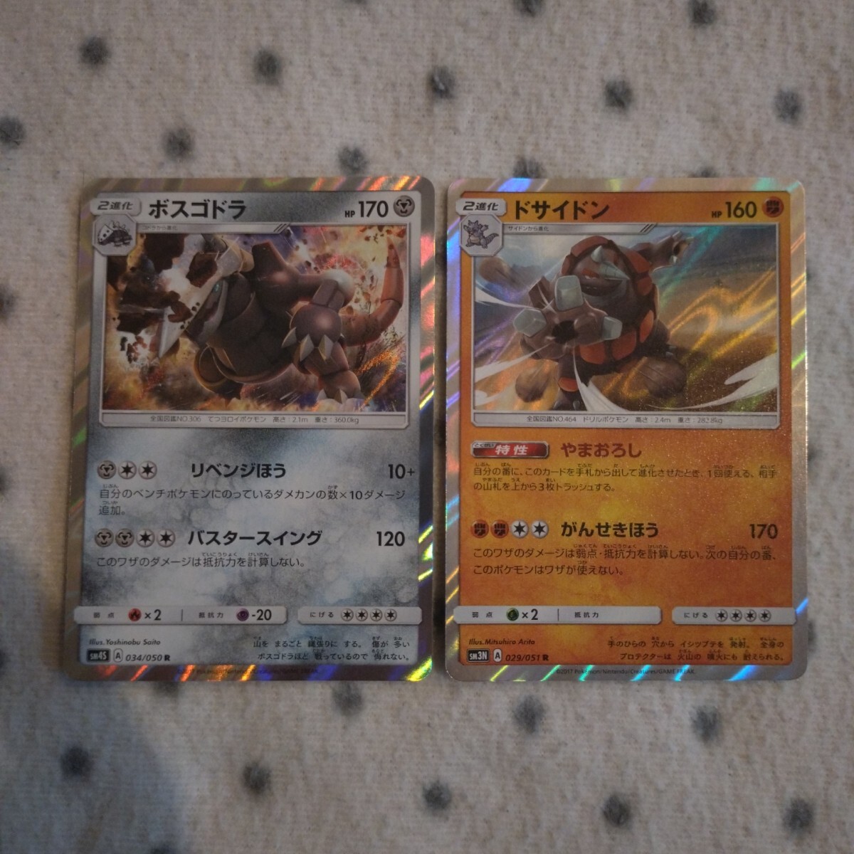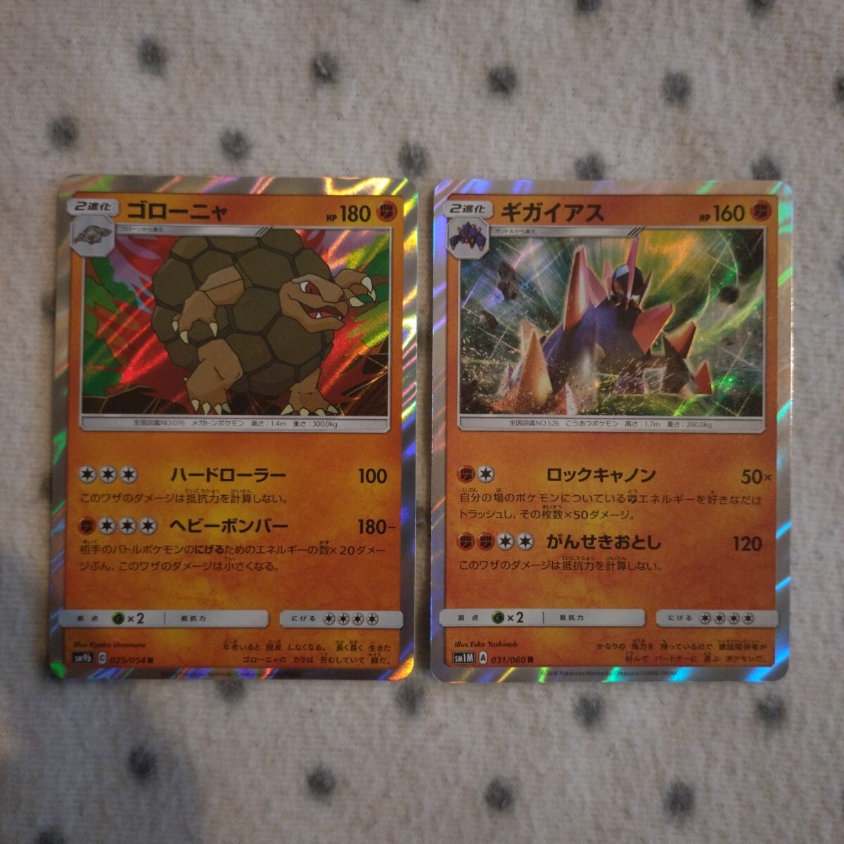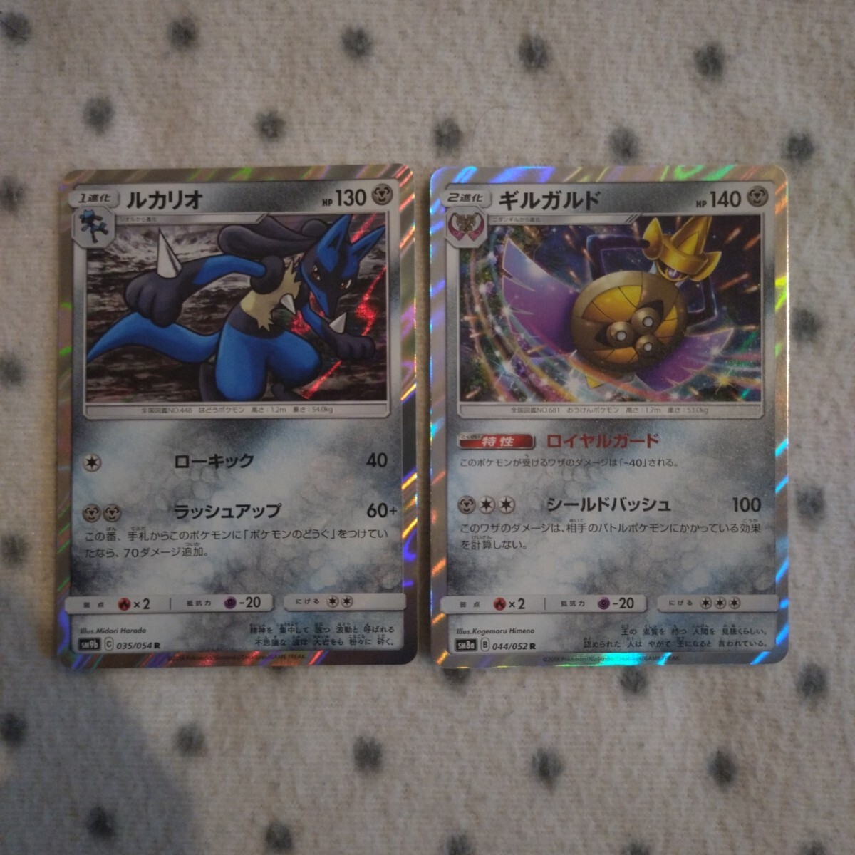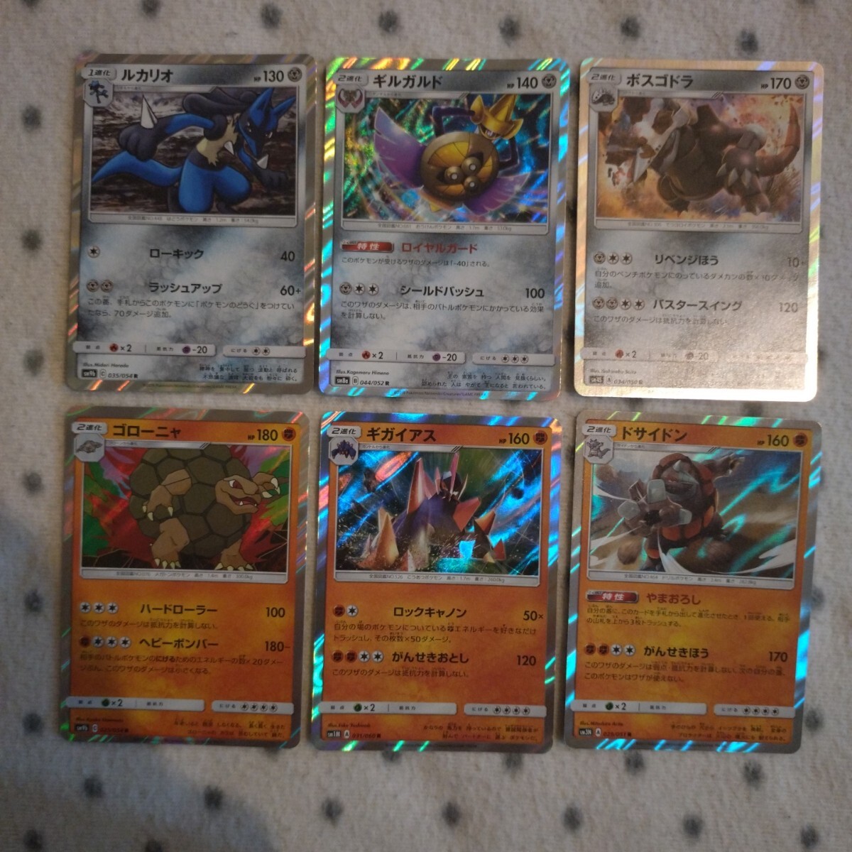 ポケモンカード SM ルカリオ、ギルガルド、ボスゴドラ、ゴローニャ、ギガイアス、ドサイドン のキラ6枚セットです。