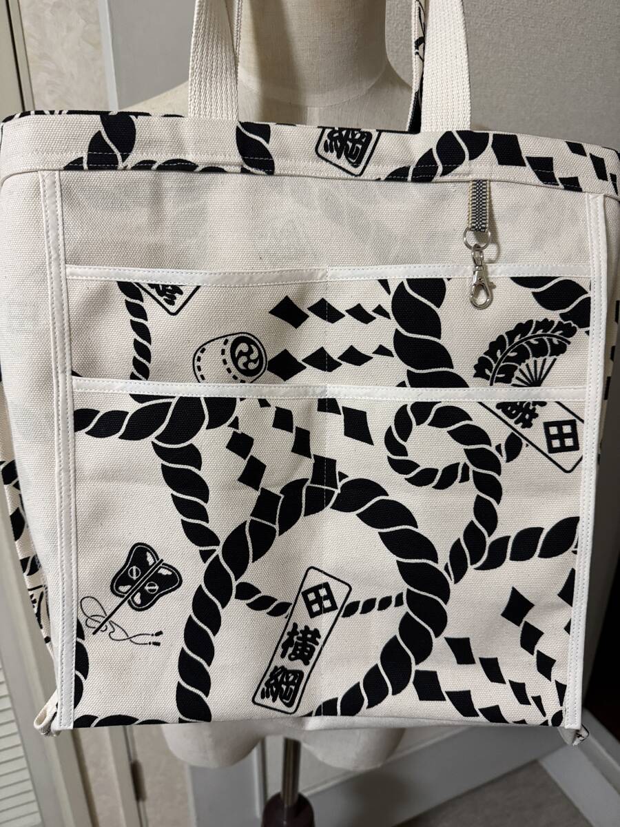 ハンドメイド 8号帆布 大きめトートバッグ 相撲 吊り下げポケット/ 和柄 横綱 大関 まわし WAGARA SUMO