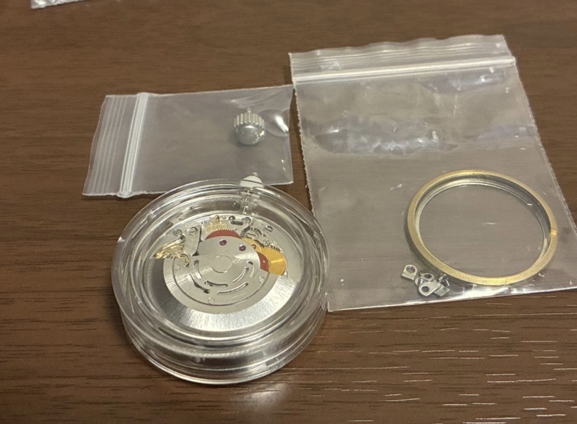 ジャンクの内容ですが、手持ちの時計に適合させようと一度リューズを抜きました。