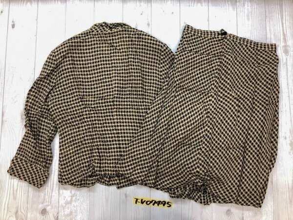 FRANCO FERRARO フランコフェラーロ レディース 日本製 チェック ウール混 薄手 ジャケット&スカート 上下セットアップ 42 黄色 です。