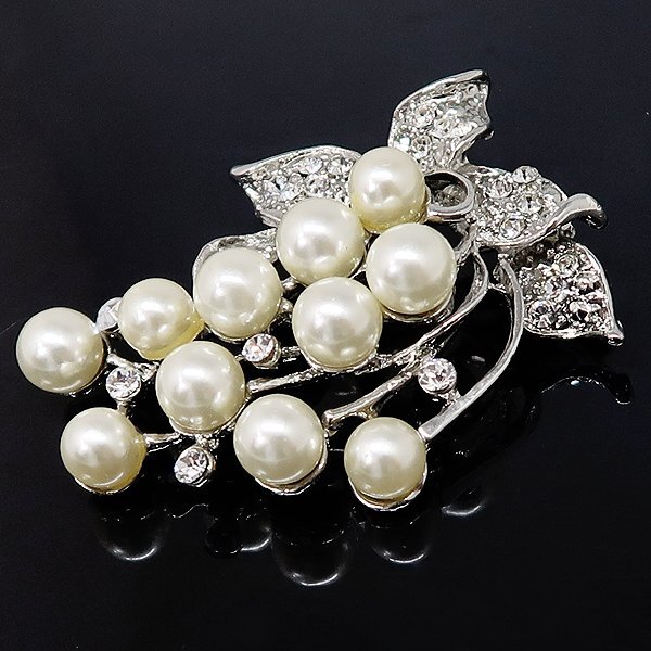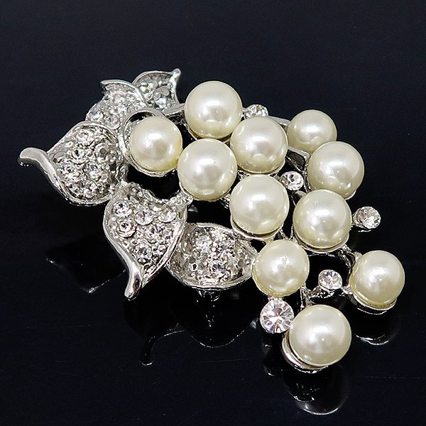 DKG★送料無料★ ヴィンテージ ぶどう フェイク パール ラインストーン アンティーク レトロ ブローチ ⑯