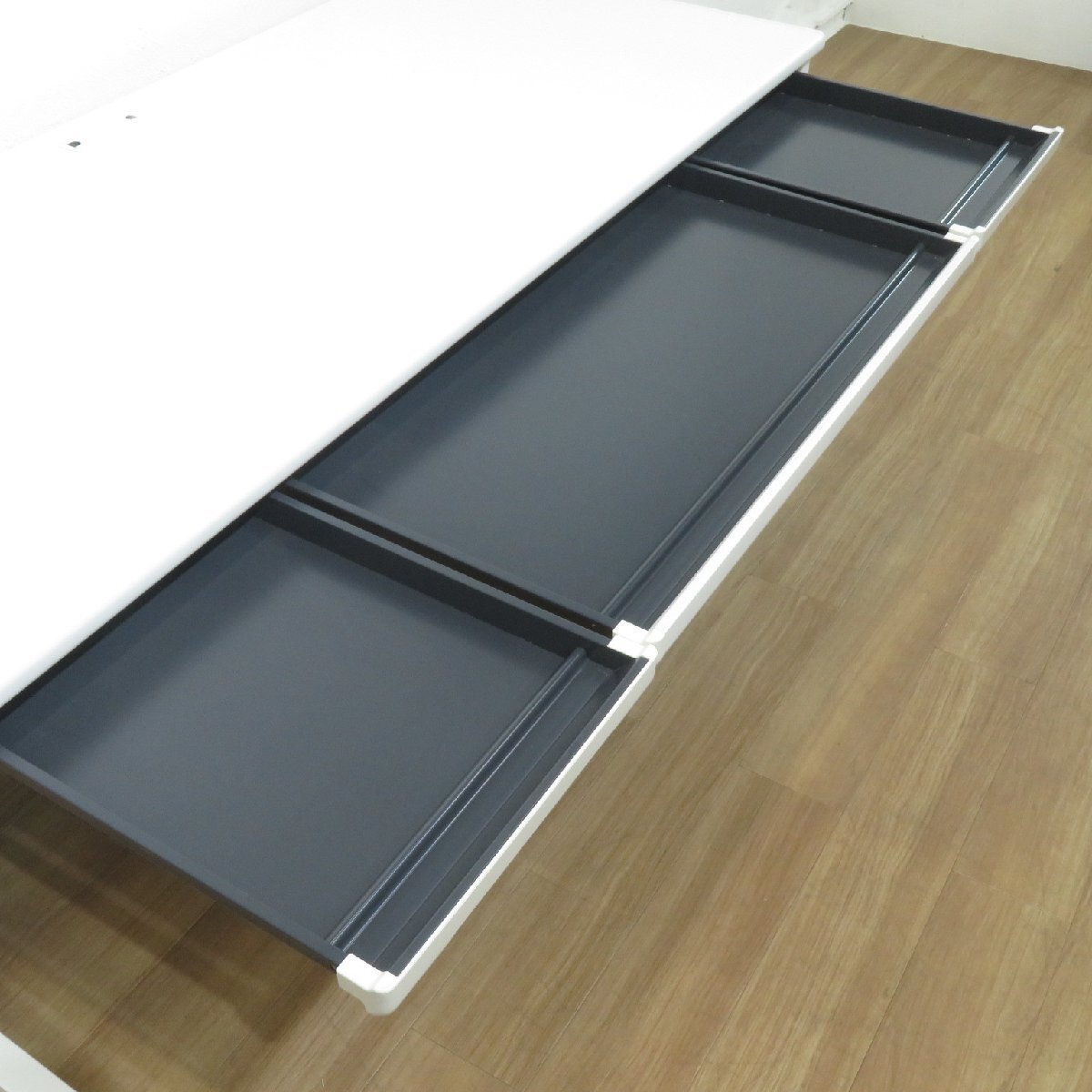 シンプル&スマートなオフィス空間に。使い勝手と清潔感を兼ね備えた1600mm幅スチールデスク ホワイトのカラーがオフィスを明るく清潔感のある印象に演出します。 奥行700mmと標準的なサイズで、パソコンや資料を広げても快適に作業が可能。 脚部はスチール製でしっかりとした安定感があり、長期間の使用にも耐える堅牢なつくり。さらに、配線用ダクトが備わっているため、デスクまわりをすっきり整理できます。 |