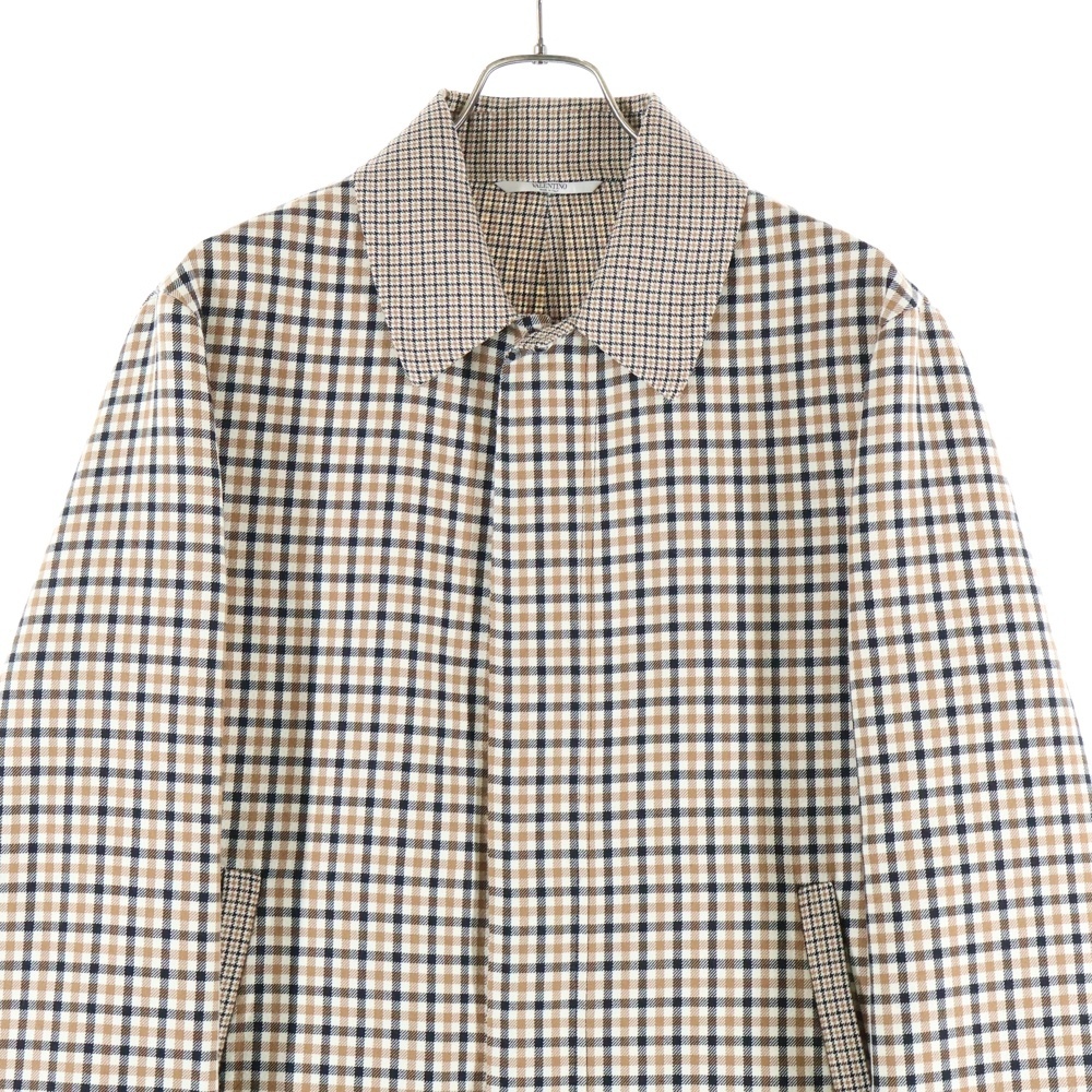 品名チェック総柄 ウール ロングコート ホワイト/ブラウン