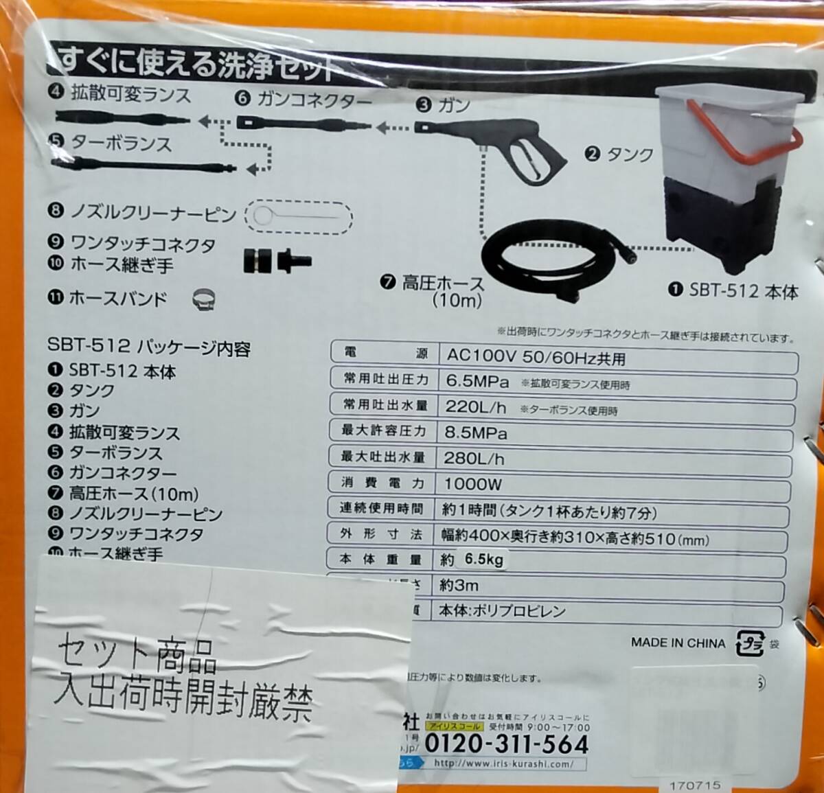 ・高圧洗浄機本体とホース関連の2個口で送ります。