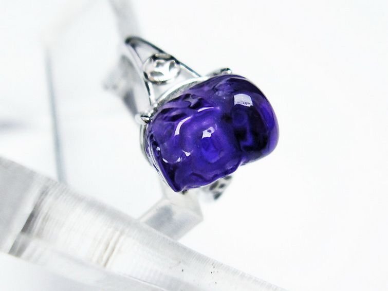 | ■商品名: アメジスト ヒキュウ 指輪 ■商品ID: T275-21104 ■商品重量:約 2.8g ■商品サイズ:サイズ:14号 【アメジストクォーツ(紫水晶)】 アメジストは鉄分によって紫色に発色した水晶の一種です。 名称はギリシャ語で酒の意味のmethyと否定辞のa、つまり「酒に酔わない」「この石でできた盃で酒を飲めば悪酔いしない」に由来するとされています。 「酒に酔わない」と言われる通り、アメジストは体調面への作用が大きく、血液を浄化して解毒、解熱作用を高め皮膚病の治療や不眠を解消するのにも用いられたと言われています。 アメジストは真実の愛を導く愛の守護石とも呼ばれ恋愛運UPの石としても広く知られています。 理想的な出会いをもたらす効果や持ち主に美や調和を与え、セクシーな魅力を引き出すとのことですので恋愛成就のお守りとしても最適といえるでしょう。 また、くよくよしたり傷ついたりしている時には癒し、目前の困難を乗り越えていけるように精神を強くするヒーリング効果も期待できます。 不眠にも効果があるとされていますので、ストレスを抱えている人にもおすすめの石です。 ⇒ アメジストをもっと詳しく ◆ワンポイント情報 アメジストは産地によって結晶や色味の傾向が変わります。 例えばブラジル産は結晶が大きめだが色味は少し薄め、ウルグアイ産は結晶は小さく細かいが色味は濃紫の傾向、メキシコ産は細長い結晶でライラックの様な明るく透明感のある紫など特徴が異なります。 産地による好みが人によって分かれるのもアメジストならではと言えるでしょう。 |