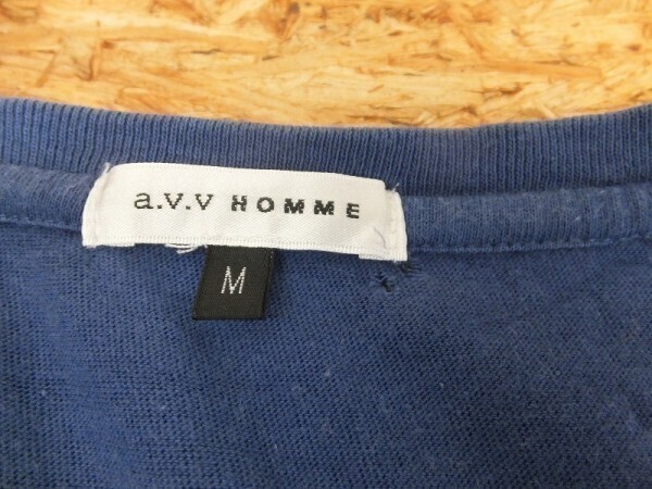 a.v.v HOMME アーベーベーオム メンズ 英字・ボタニカルプリント Vネック 半袖Tシャツ M 青 です。