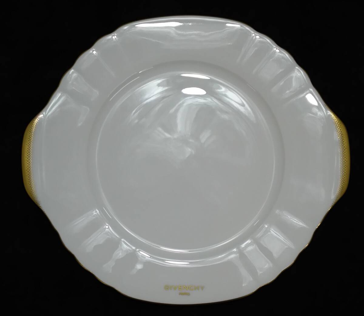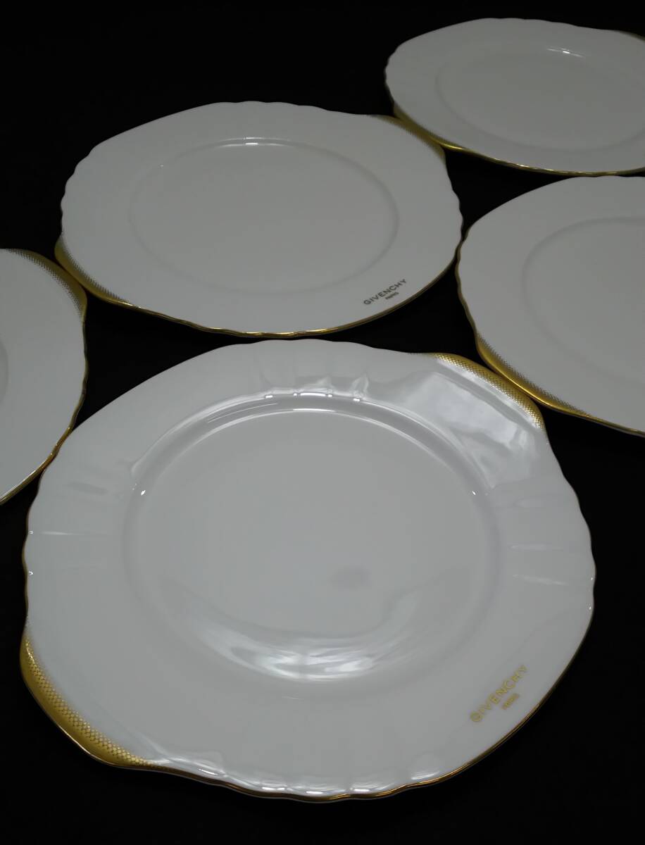【菊水-748】■ GIVENCHY レリーフ ケーキ皿 ■【5枚組セット】■ ジバンシー/金彩/白/中皿/食器(IS) |