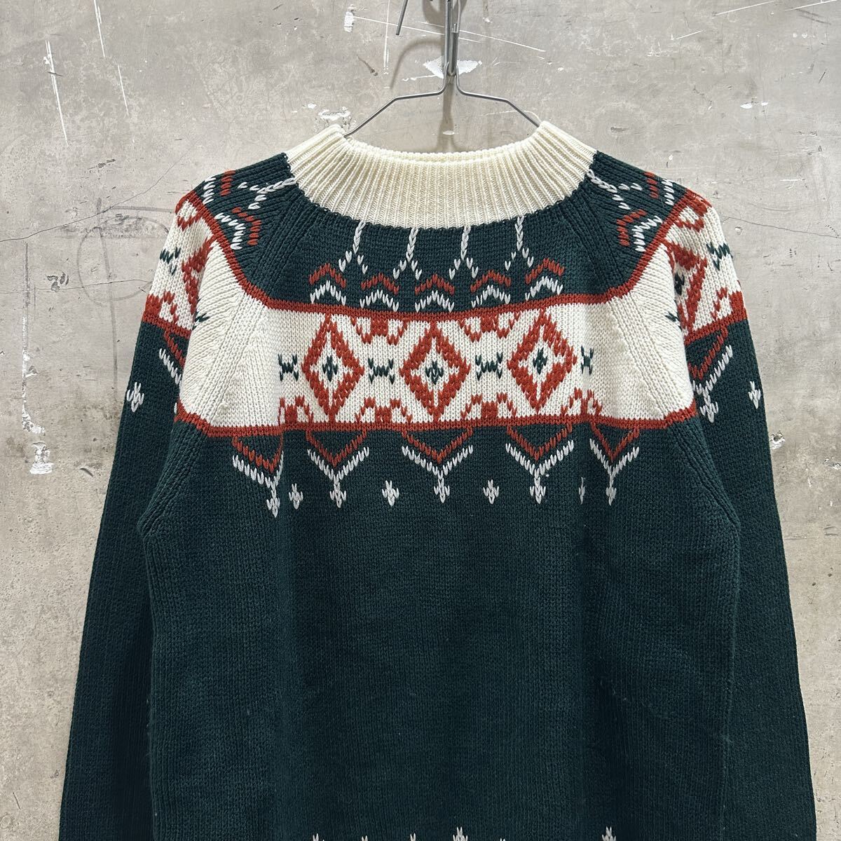 US古着70〜80s J.C.PENNY ノルディック柄セーター ニット ビンテージ モックネック ハイネック ペニー アクリル