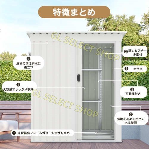 • 【屋根の溝は排水に役立つ】内部は濡れないために、斜面を設計しました。雨が降ると、屋根にたまることなく、斜面と凹槽を経由して地面に流れ落ちます。湿気から工具を守る頑丈で耐久性があり、変形しにくい、悪天候から内部の物品を保護します。