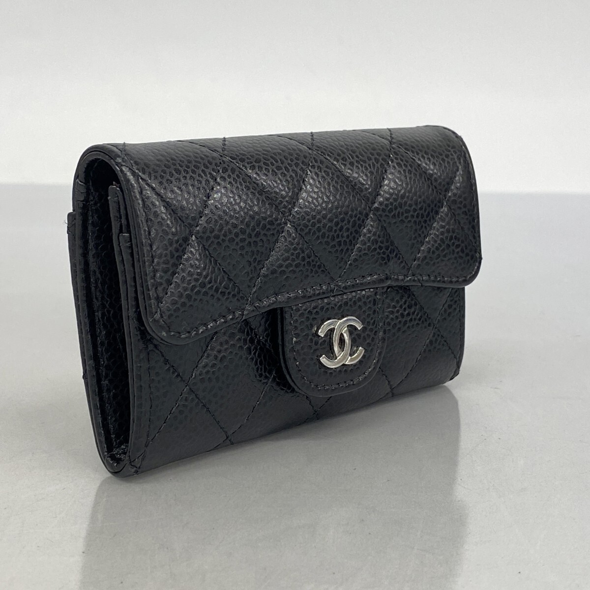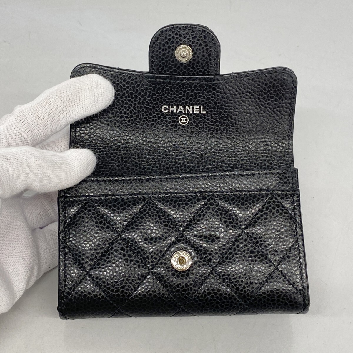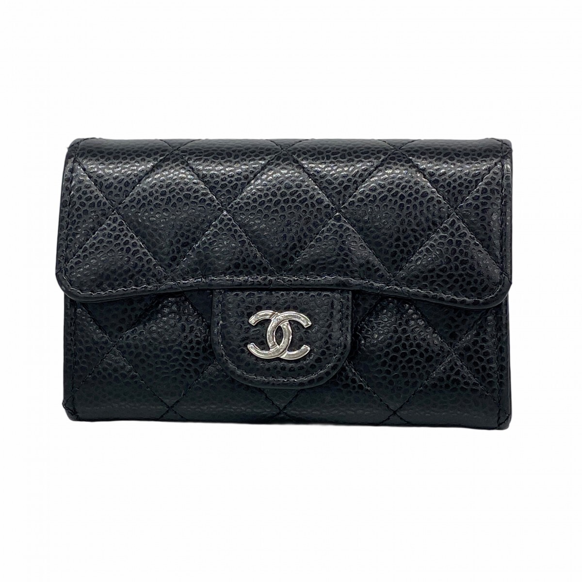 ★最終価格【5mc2508】シャネル カードケース マトラッセ キャビアスキン ブラック シルバー金具【中古】レディース