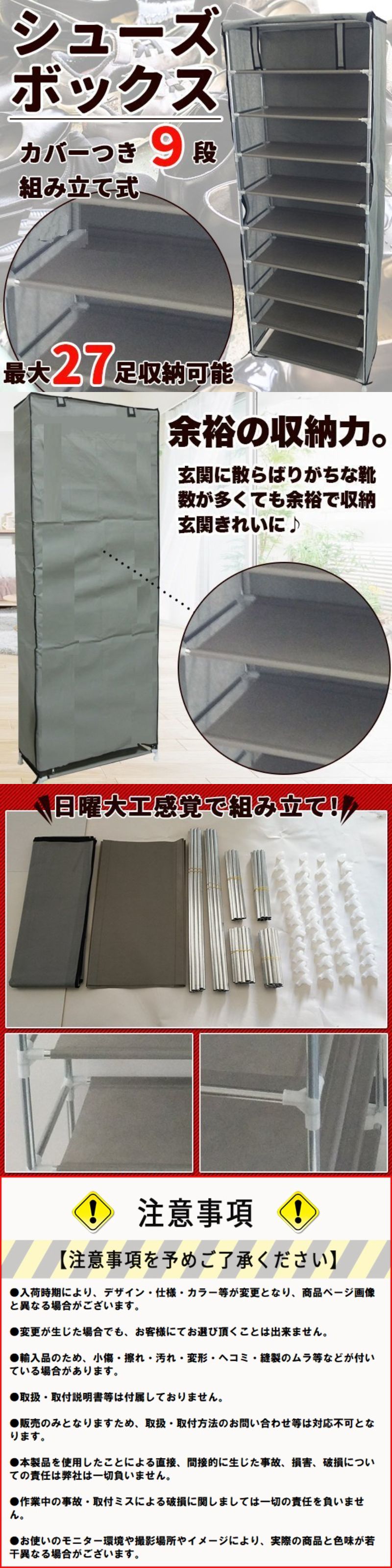 シューズラック 9段 シューズボックス カバーつき 下駄箱 組み立て式 靴収納 ラック スリッパ 靴収納ボックス 大容量 靴入れ ラックタワー