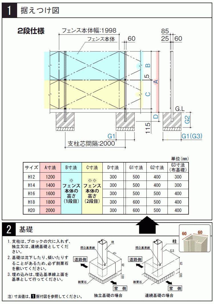 控え柱不要で最大高さ2mまでフェンスの設置が可能。