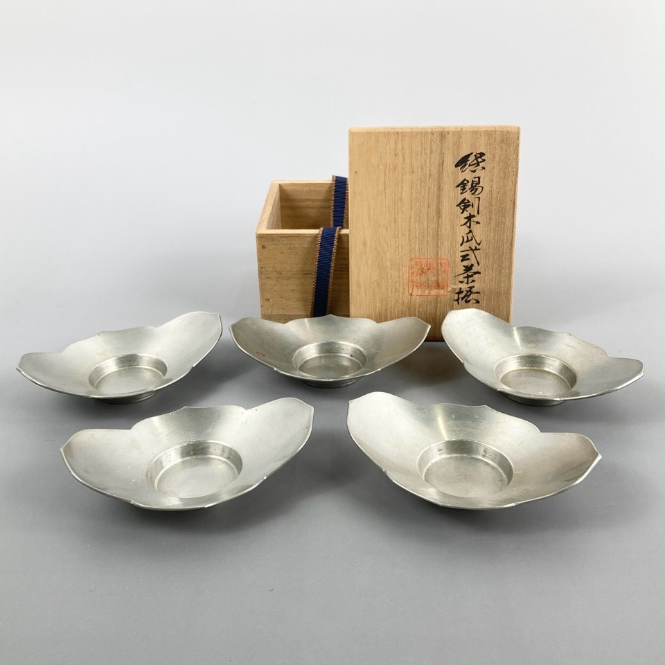 | 商品名 | 四世 秦蔵六 造 純錫 剣木瓜式茶托 倣盛永興作意 五客 共箱 煎茶道具 煎茶器 茶道具 400g 4252249 |