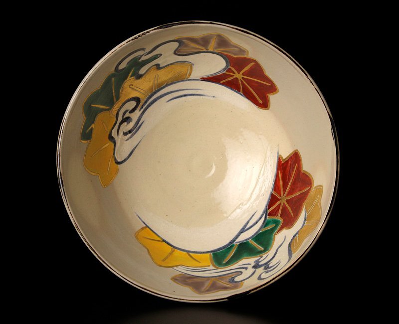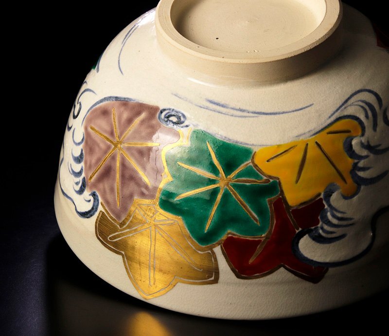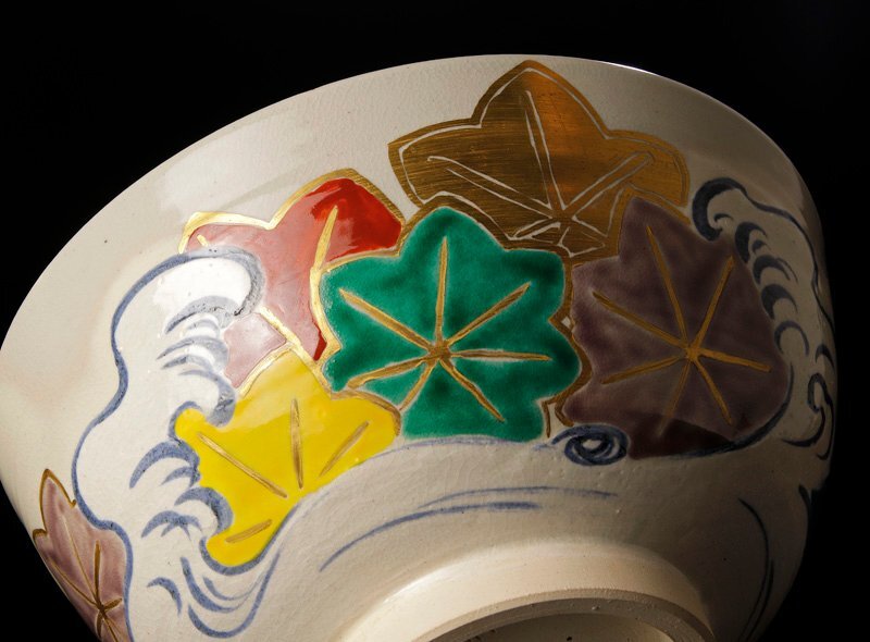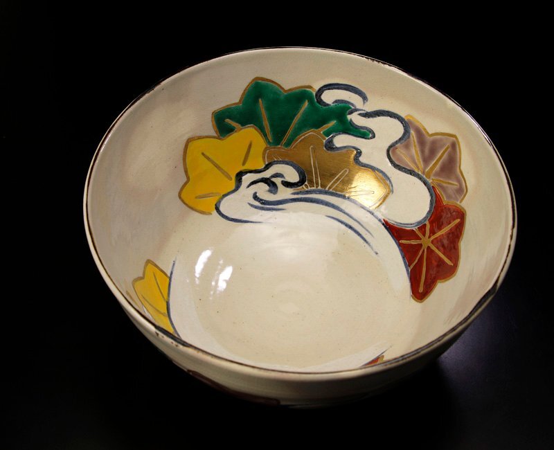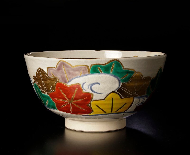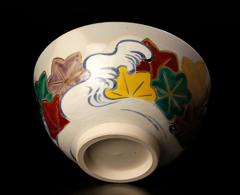 色鮮やかな紅葉と流麗な川の文様が見込みから外側へと軽やかに巡り、やわらかな白釉の地に雅な景色を広げ、席をいっそう華やかに引き立てる逸品です。 ★商品は九代白井半七の作品である事を保証致します。 |
