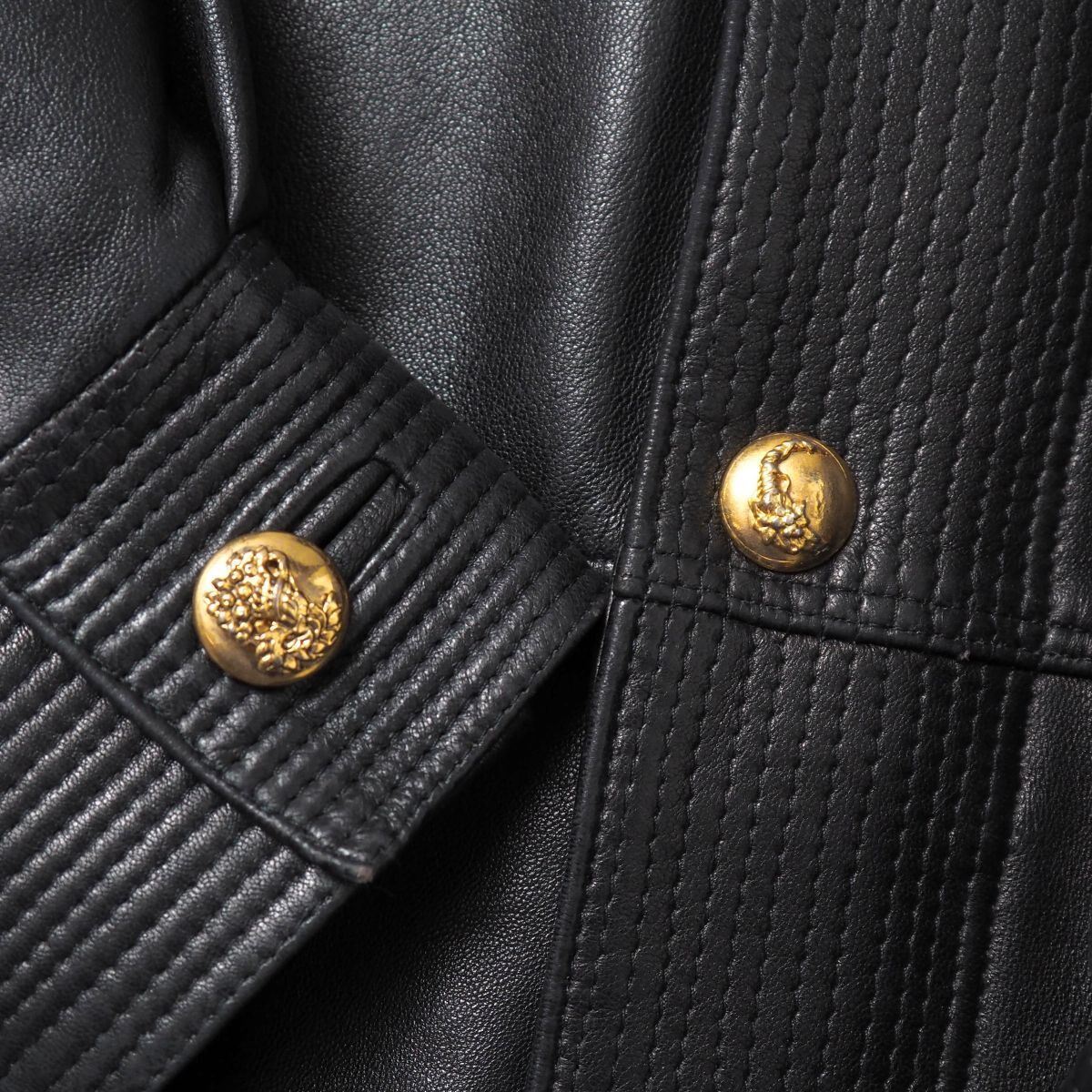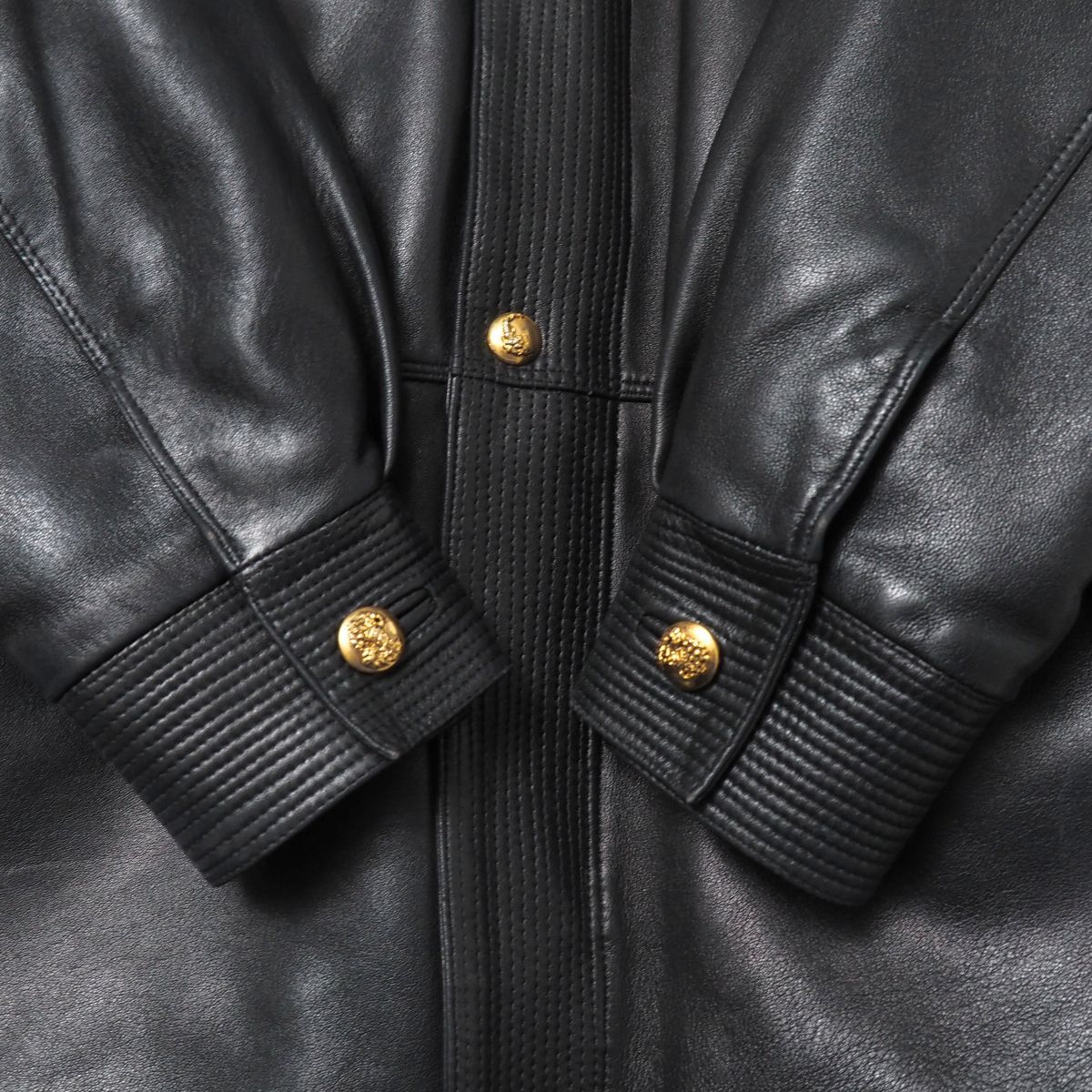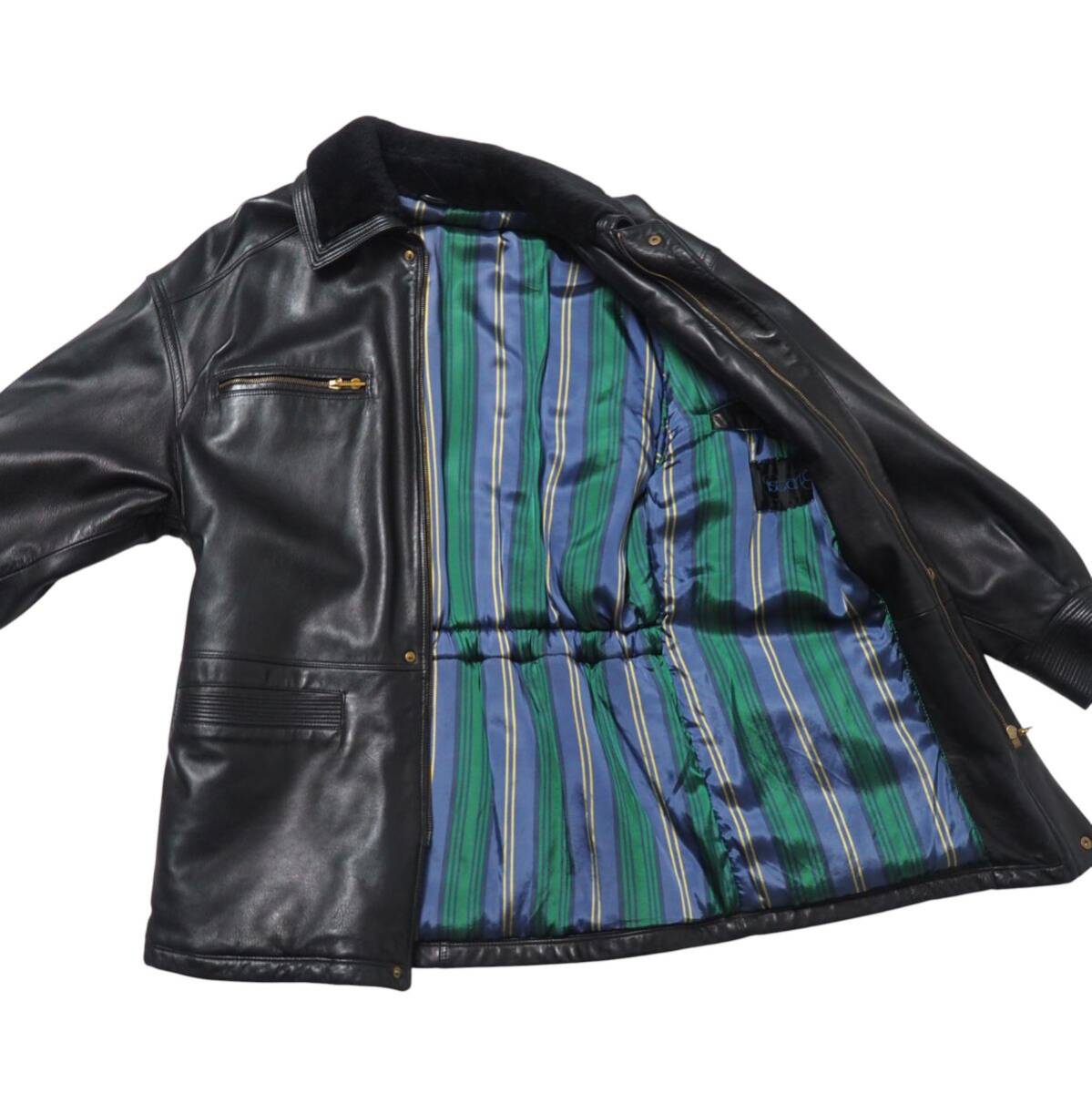| 素材 | 組成表記が欠品しておりますため私見となりますが、表地には本革を、裏地や襟部分、中綿にはそれぞれポリエステルやアクリルなどの化繊素材が使用されているものと思われます。 |