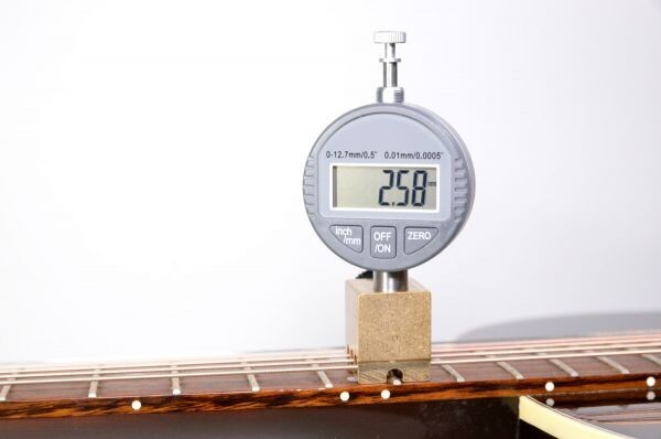 こちらの商品はデジタル数字を見ながら、弦高を測定できます