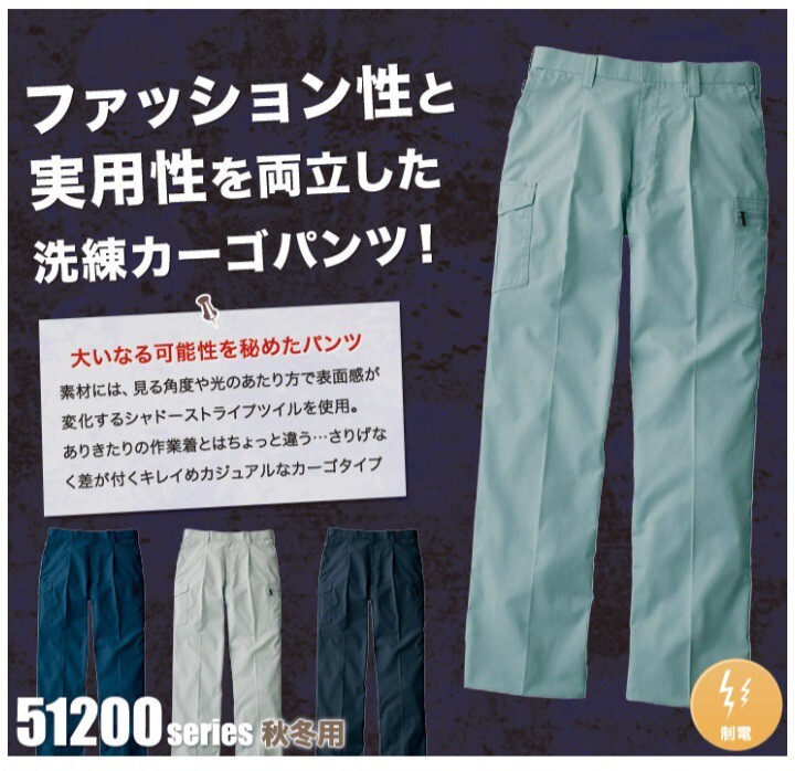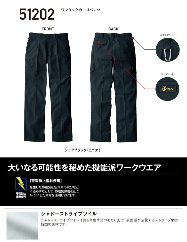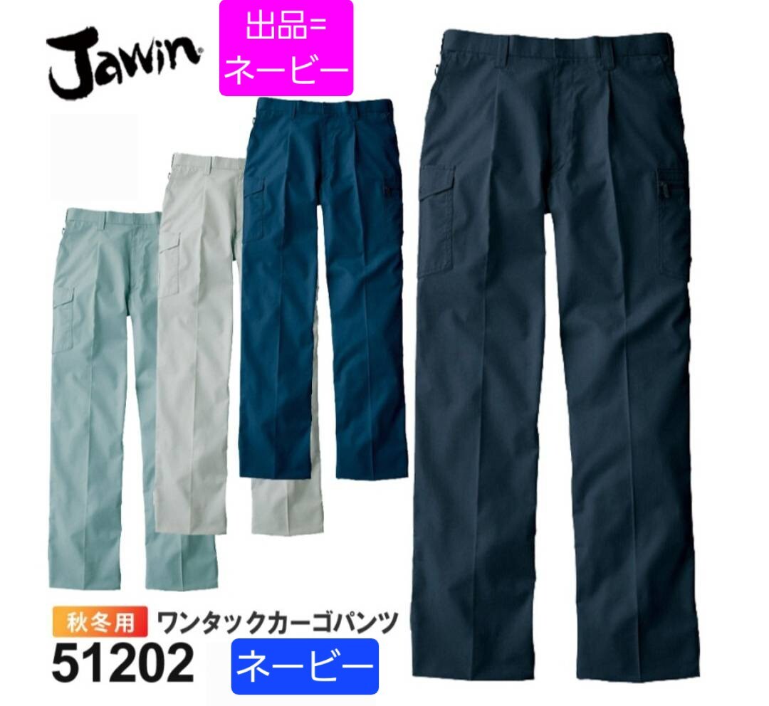 5808 Jawin 51202 自重堂|秋冬ワンタックカーゴパンツ|ネービー|W96㎝|新品未使用|綿ポリ混紡|帯電防止|作業ズボン|ジャウィン|通年 紺