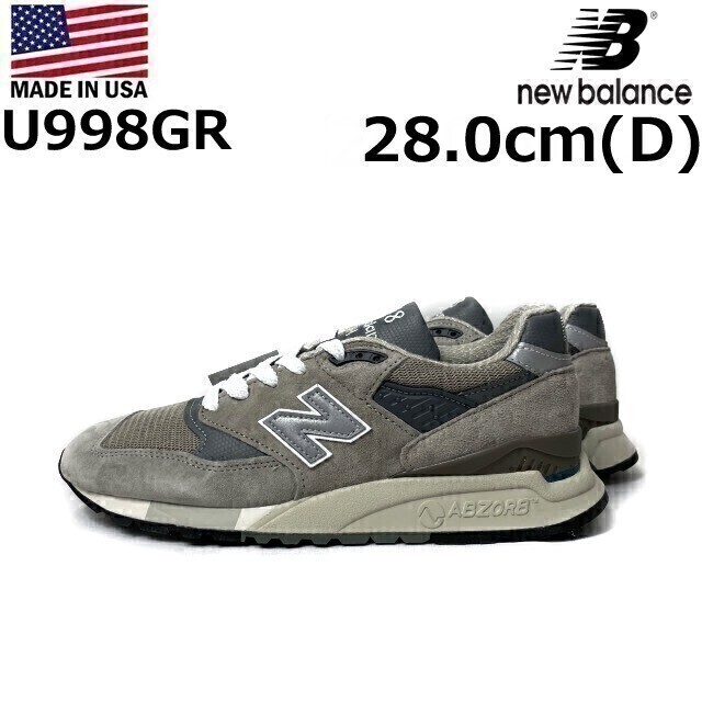 1円~!売切!【正規新品】new balance ニューバランス◆U998GR スニーカー アブゾーブ US購入(Dワイズ/US10/28.0cm)グレー 190303-50