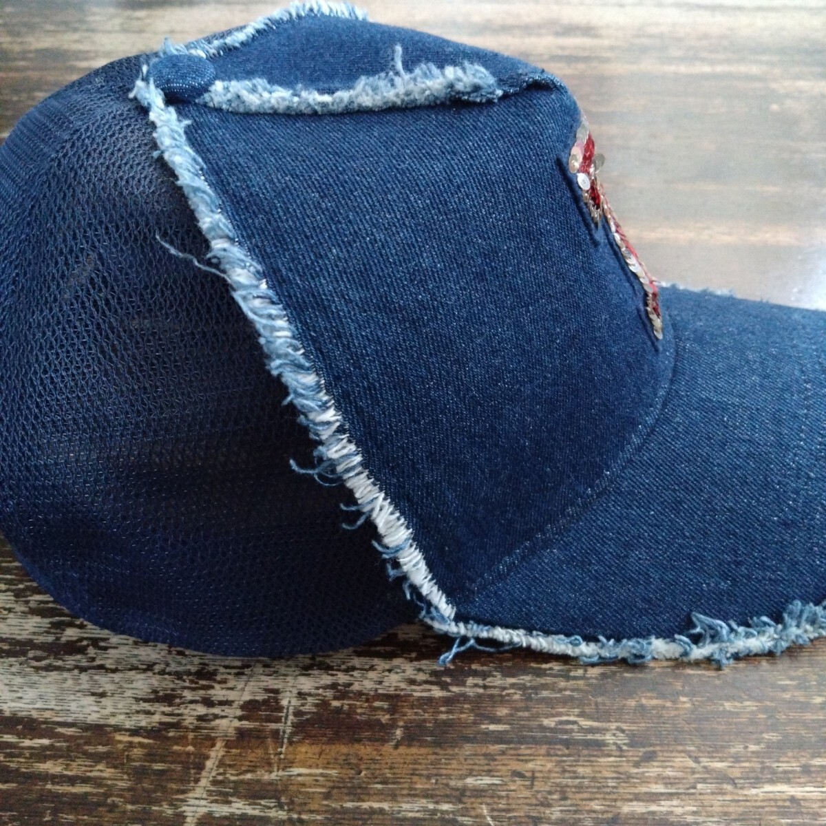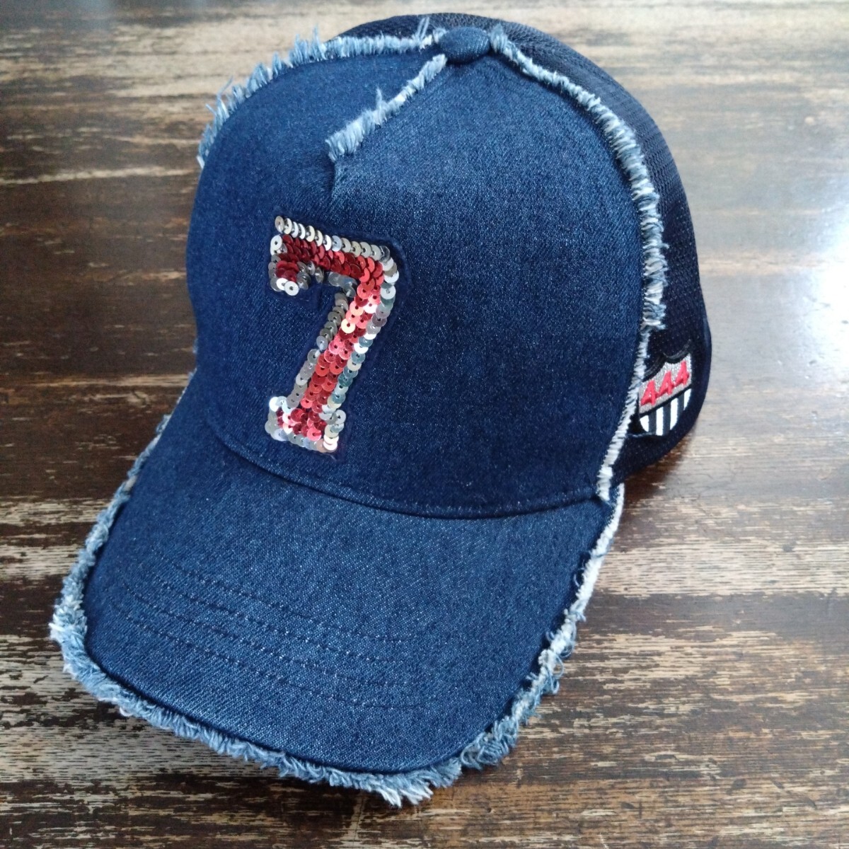 赤とシルバーの7のスパンコールがカッコいいキャップです。