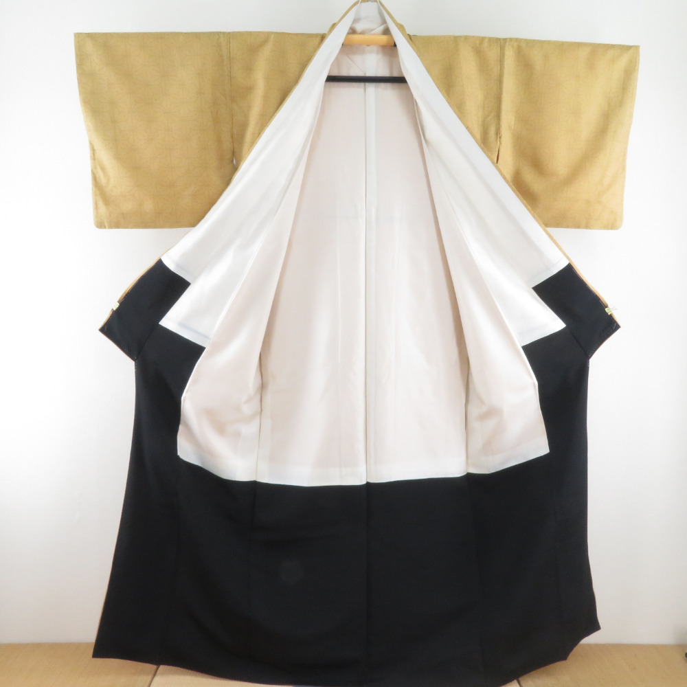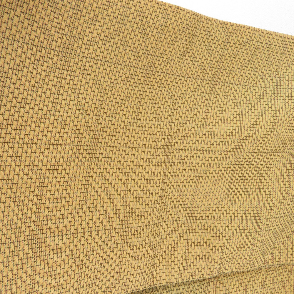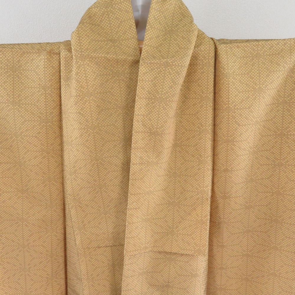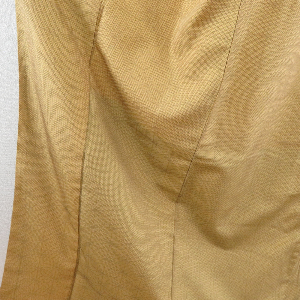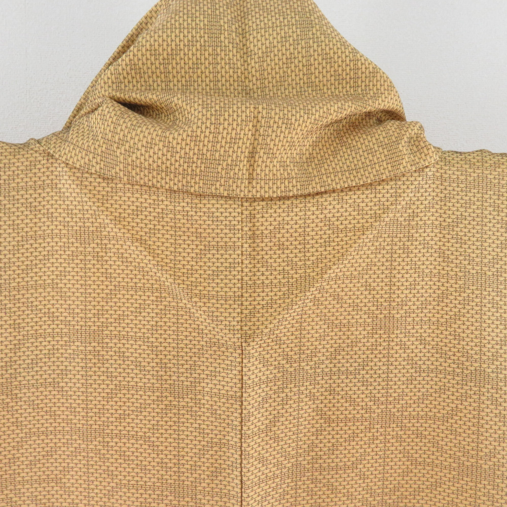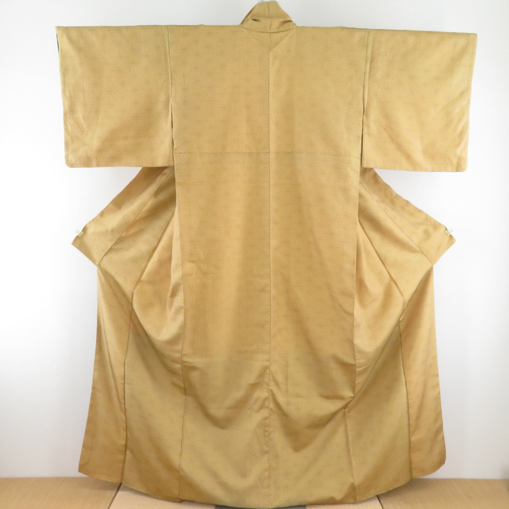 | 紬 着物 麻の葉文様 袷 広衿 黄土色 正絹 カジュアル着物 仕立て上がり 身丈161cm |