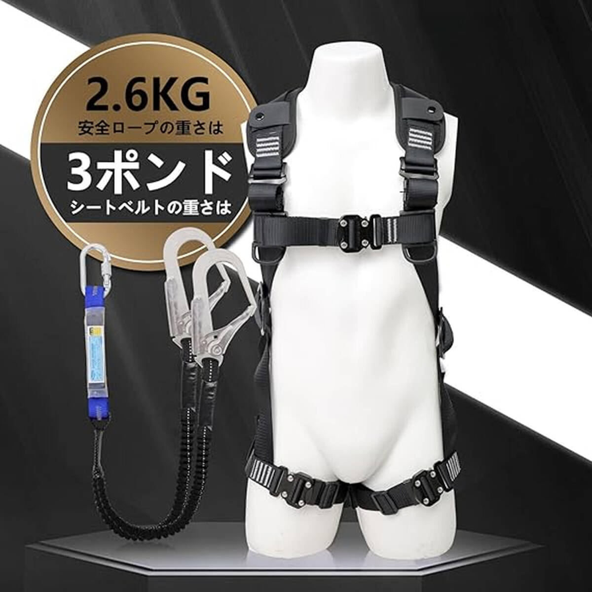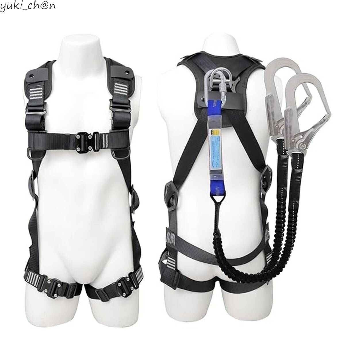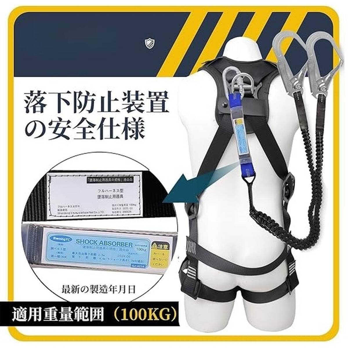 安全帯 フルハーネス ブラック背中付き 新規格安全帯 セット 墜落制止用器具フルハーネス型 高所作業 伸縮式ダブルランヤード