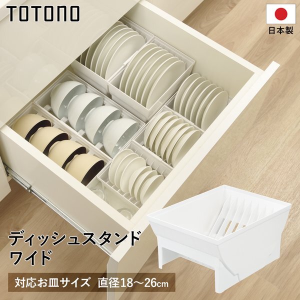 ※ 本製品はセット販売ではありません。ご注文数量1につき、トトノ引き出し用ディッシュスタンドワイドを1個お届けいたします。掲載写真に他のディッシュスタンドも写っていますが、お届けの商品は「引き出し用ディッシュスタンドワイド」です。