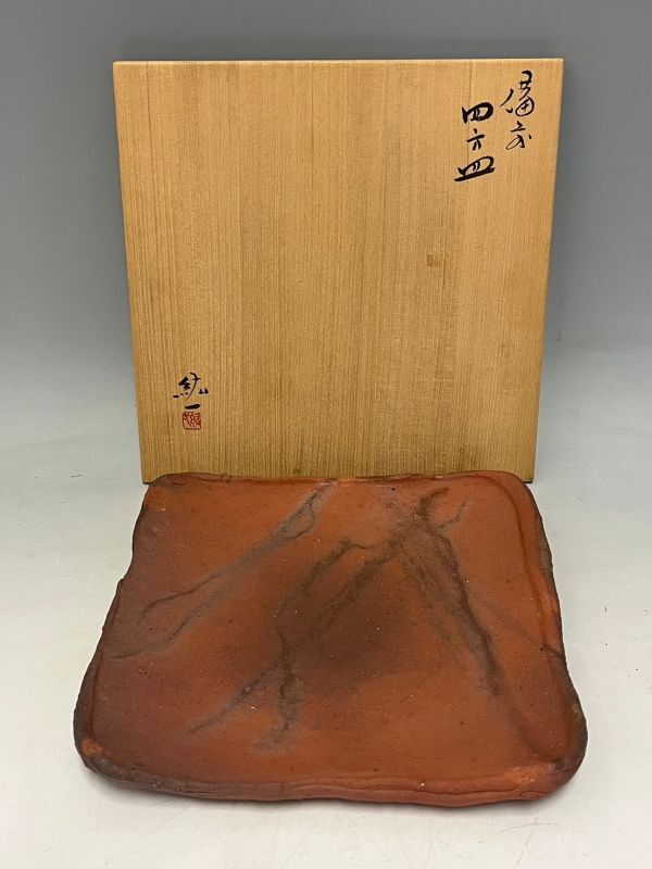 ご覧頂き誠にありがとうございます。 今回出品させて頂きました商品はCs2534『おばあ様がお持ちのお茶道具を整理したいT様より』柴岡紘一作 備前 四方皿 共箱 日本現代工芸陶工作品 茶道具になります。 時代経過によるキズや汚れ、ジカン、窯疵、小疵などございます。 ご了承下さい。 縦横29 高さ4 多少の汚れ 箱多少のイタミ |