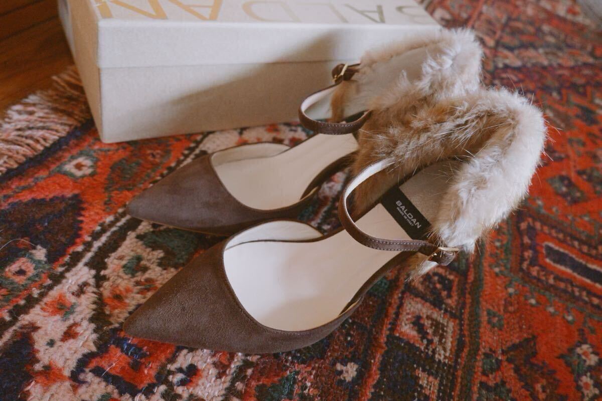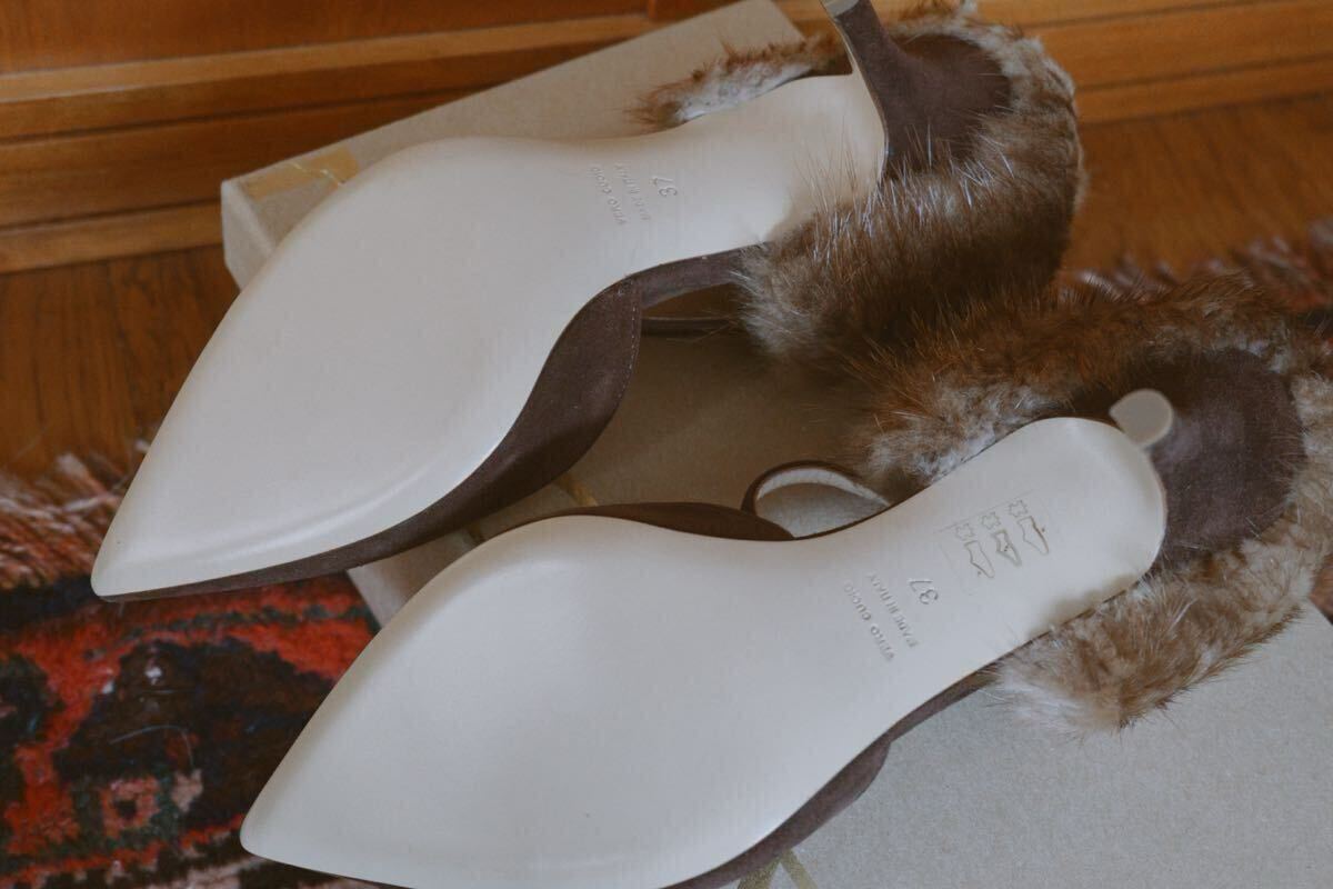 ボリューミーなファー付きで華やかかつ上品なパンプスです。