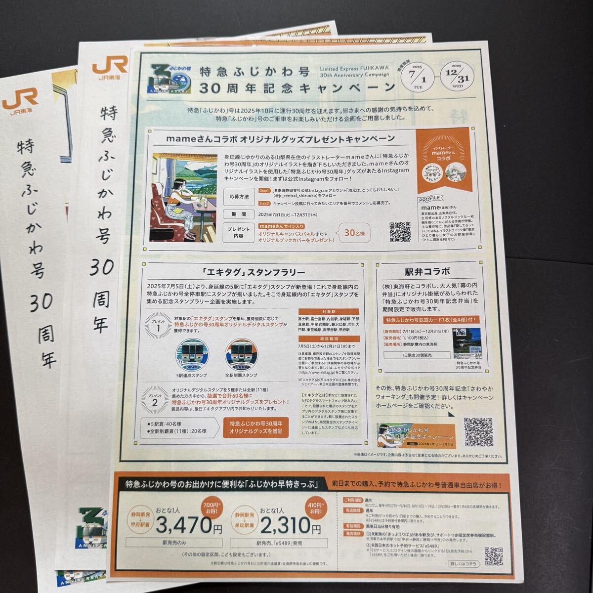 特急ふじかわ号の30周年記念品で、構内で配布されていたイベントのチラシです。
