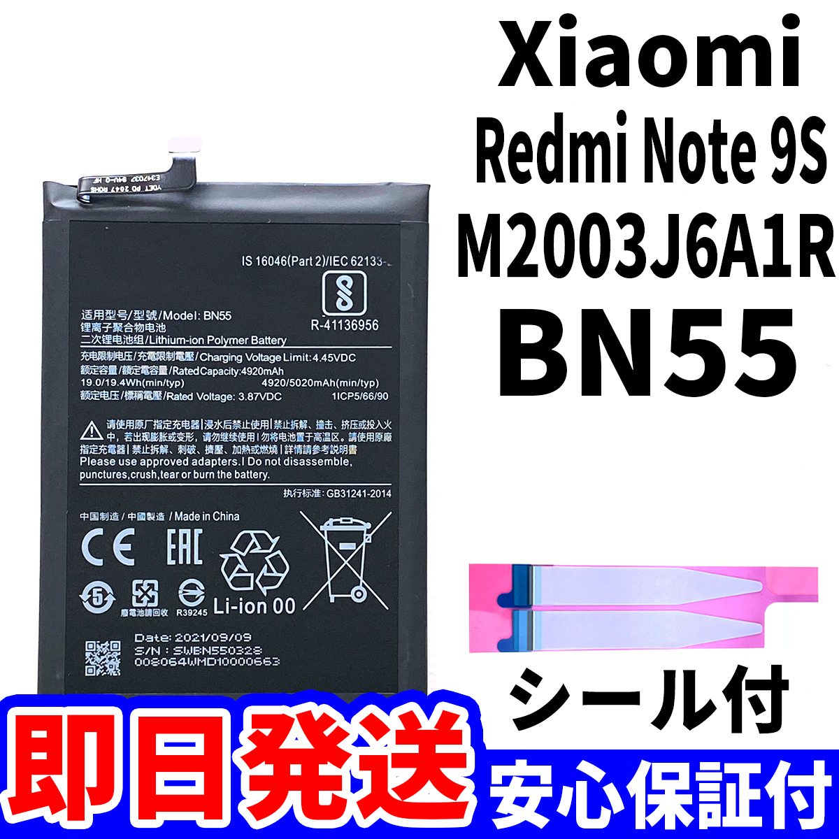 ★Xiaomi Redmi Note 9S バッテリー交換 M2003J6A1R BN55 電池パック交換キット battery repair 電池交換専用両面テープ バッテリー単品 工具なし★