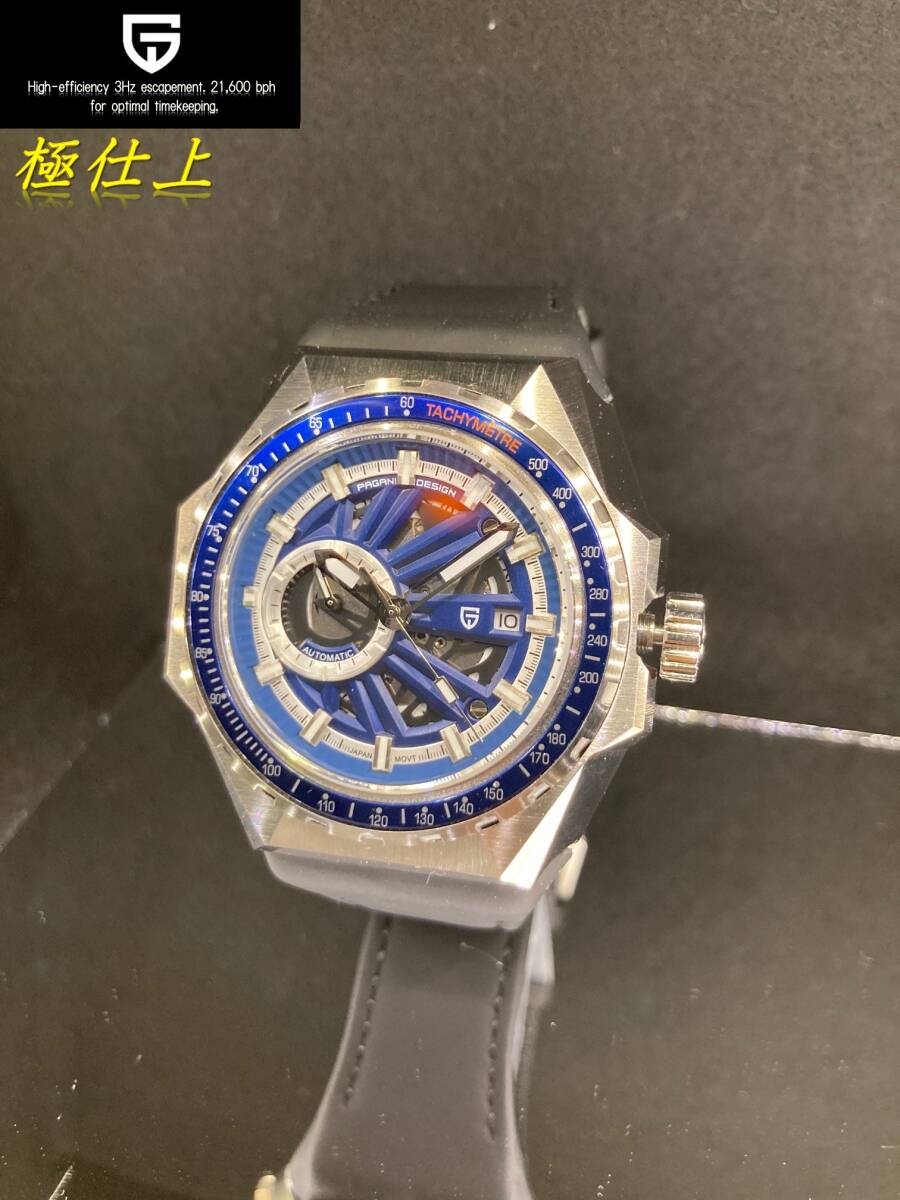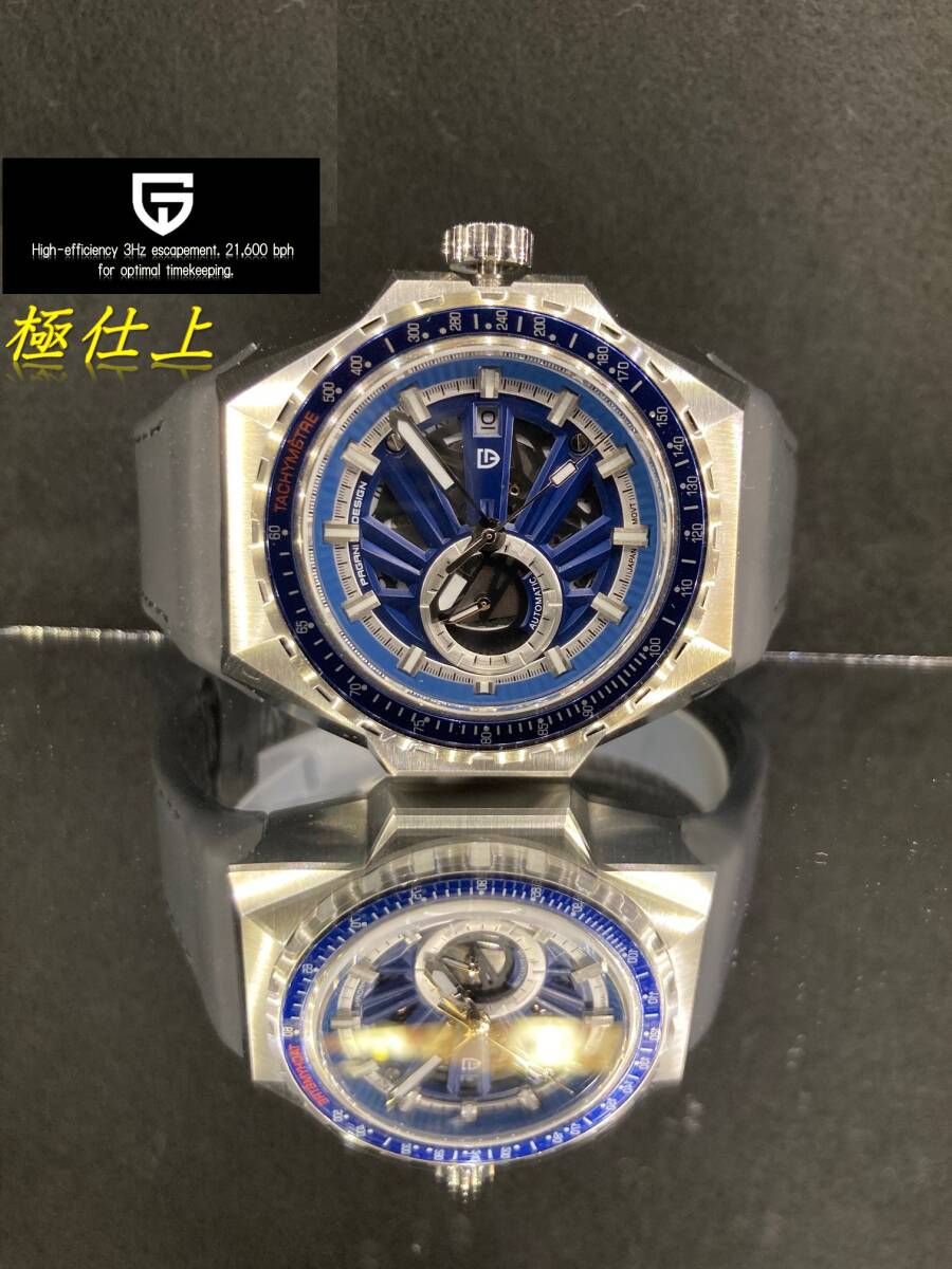 ■極仕上/調整済/10日保証付/新品に極めて近い1回だけ使用USED/中古品/リーフタイガーオマージュ)(機械式)青幾何盤/ヨットタイマーGMT/日本製MOV