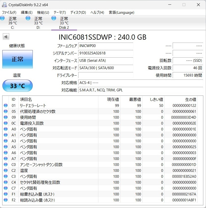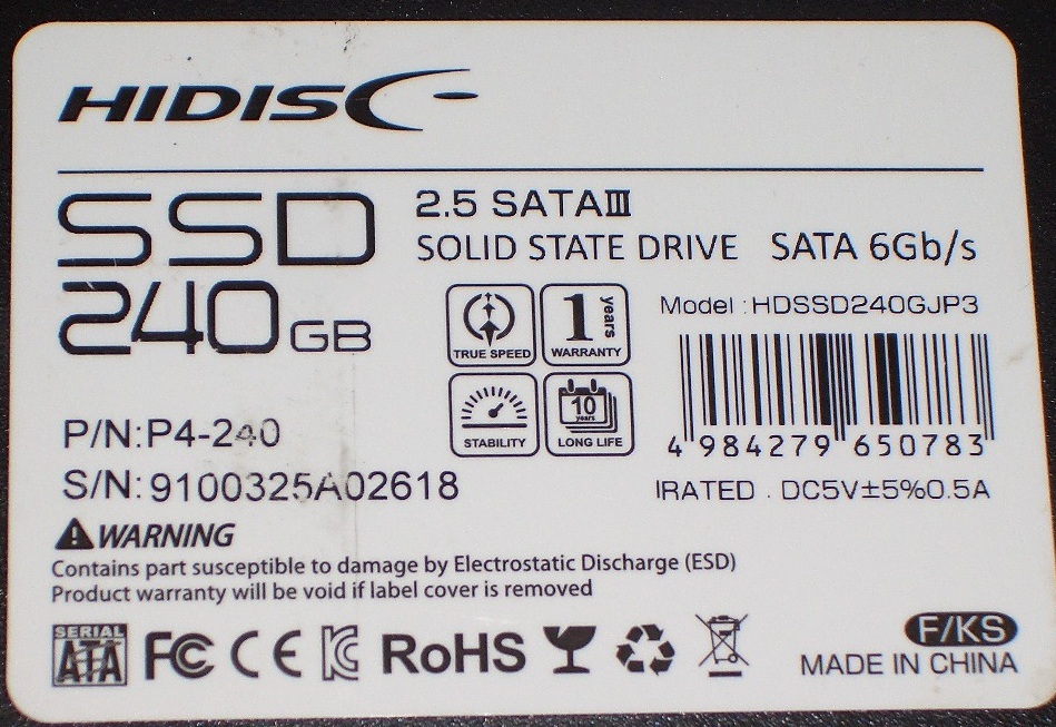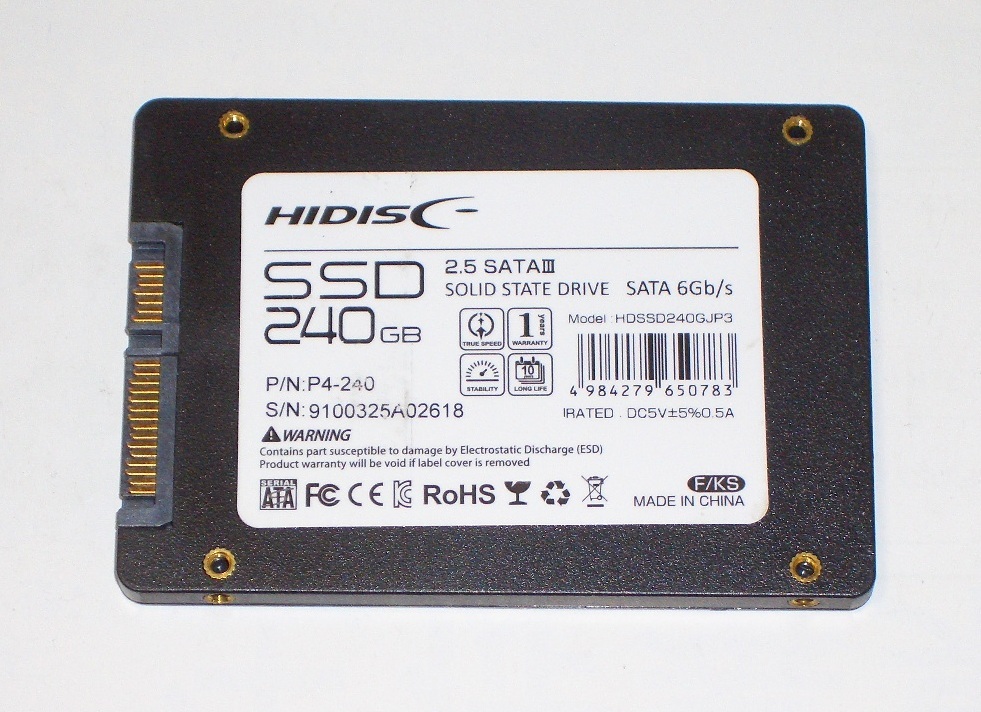 HIDISC製 2.5inch SATA 6G SSD『HDSSD240GJP3』240GB/7mm厚 ジャンク!