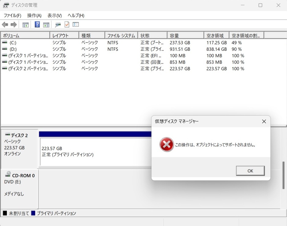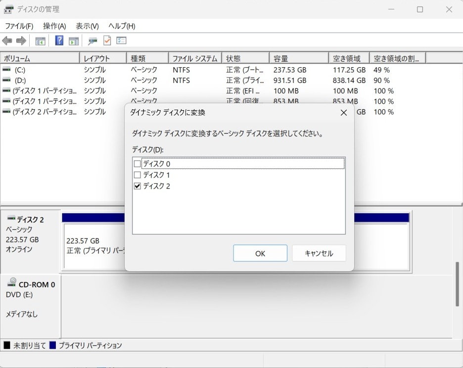 ていますが、”ダイナミックディスクに変換”の操作をしようとすると”この操作は、