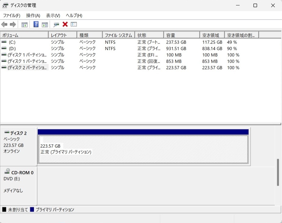 をしてから、Windowsで認識しなくなりました。ディスクの管理画面では正常となっ