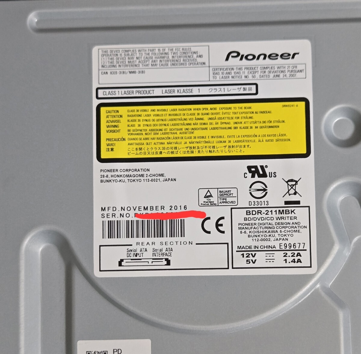 Pioneer Ultra HD Blu-ray BDXL ブルーレイディスクドライブ BDR-211MBK