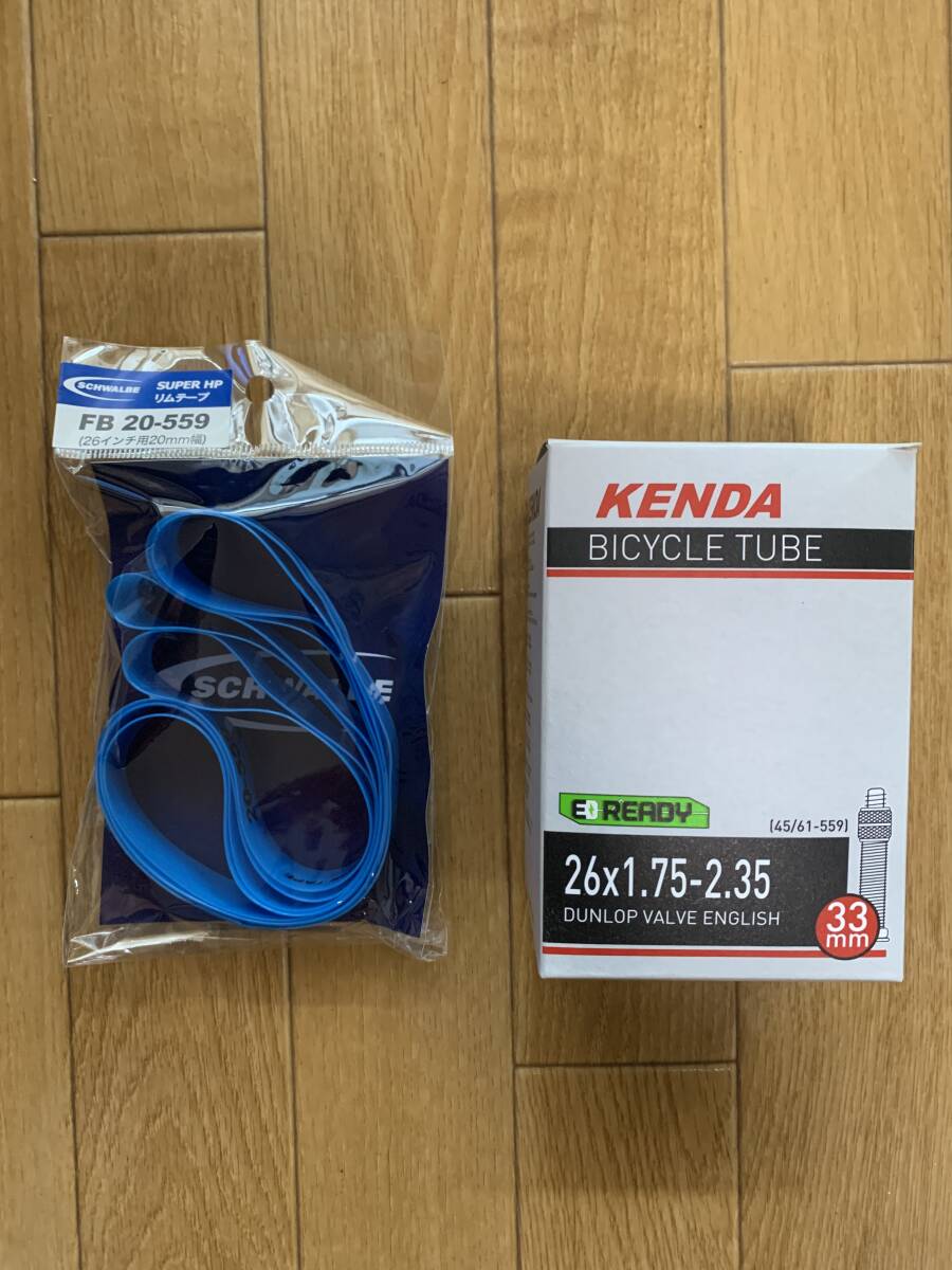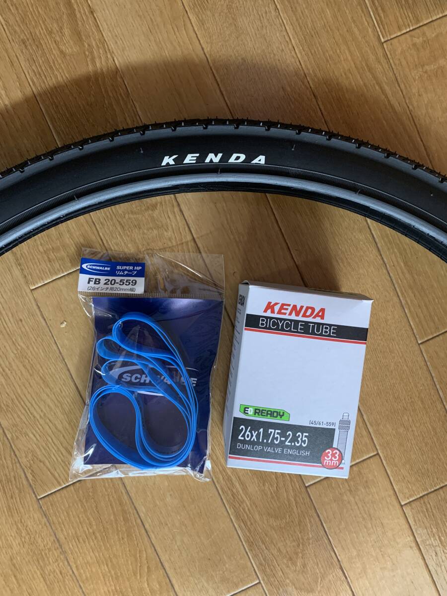 Kenda ケンダ タイヤ 26x1.75 26インチ リムテープ、チューブセット