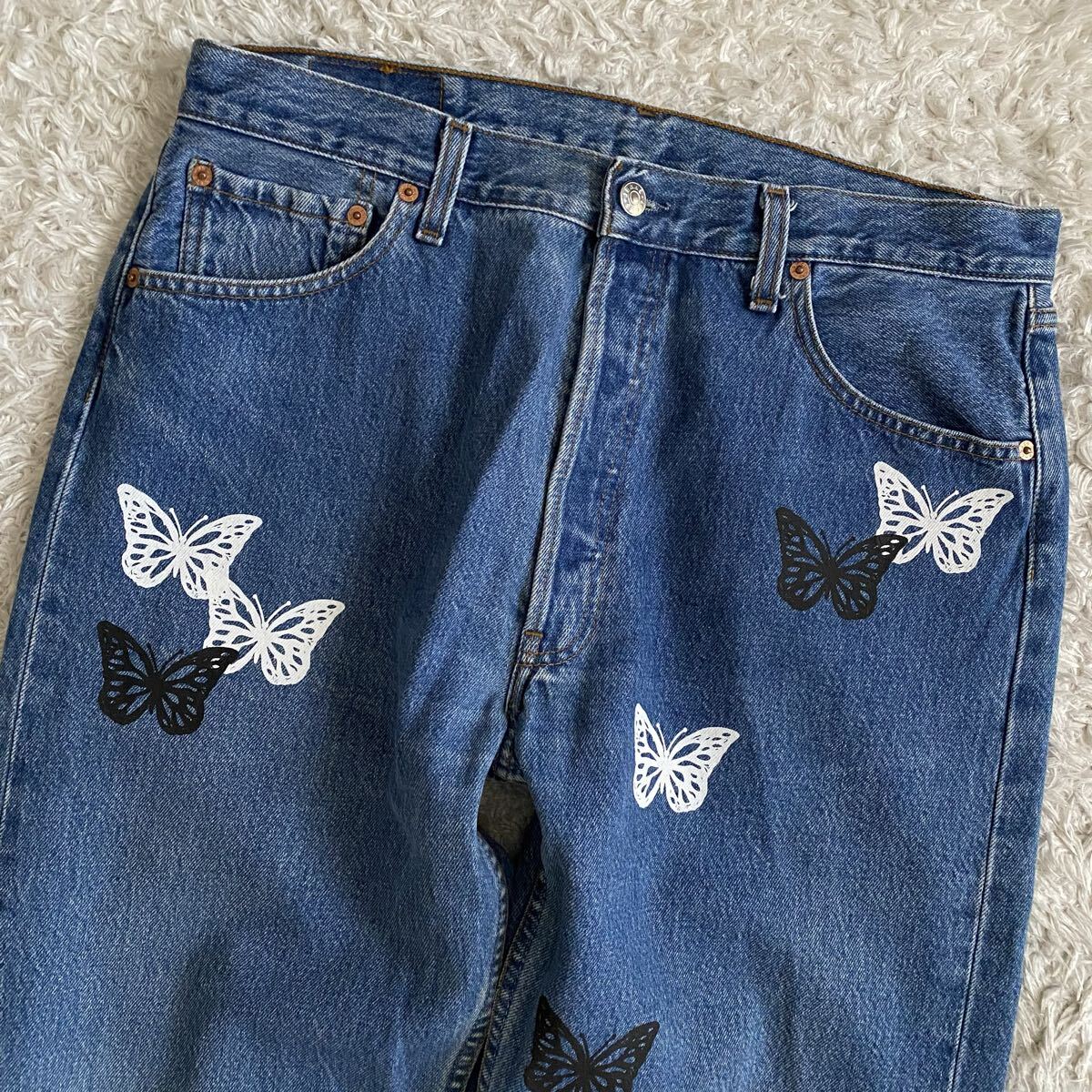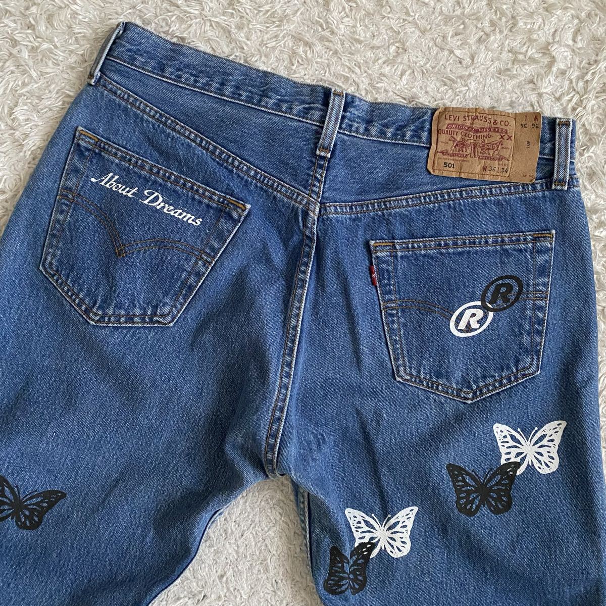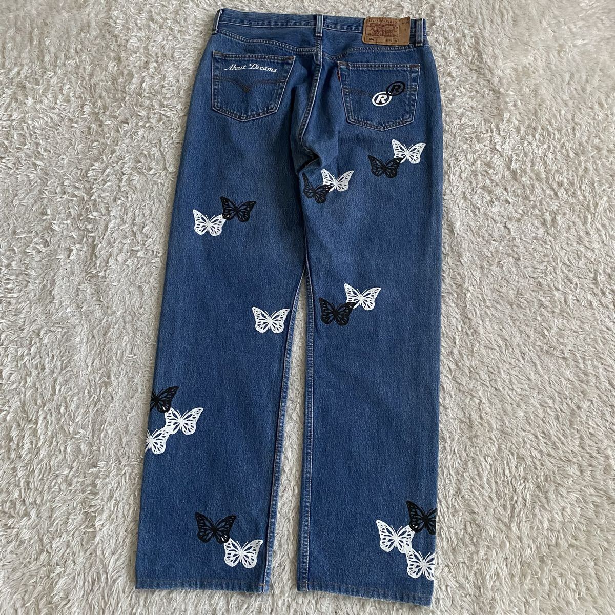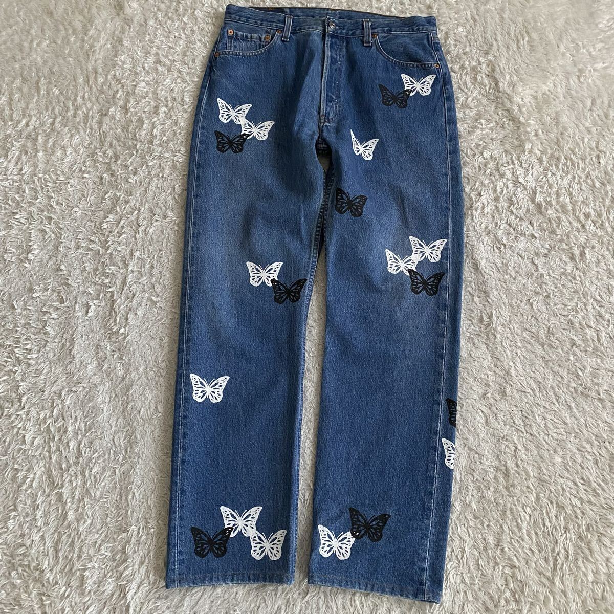 501-0114 コラボデニム バタフライ 蝶々 チョウチョ ペイント加工 ペンキ加工 ウォッシュ加工 ヴィンテージ加工 ビンテージ USED加工 ダメージ加工 グランジ デニム ジーンズ ジーパン Gパン パンツ ボトムス アメカジ
