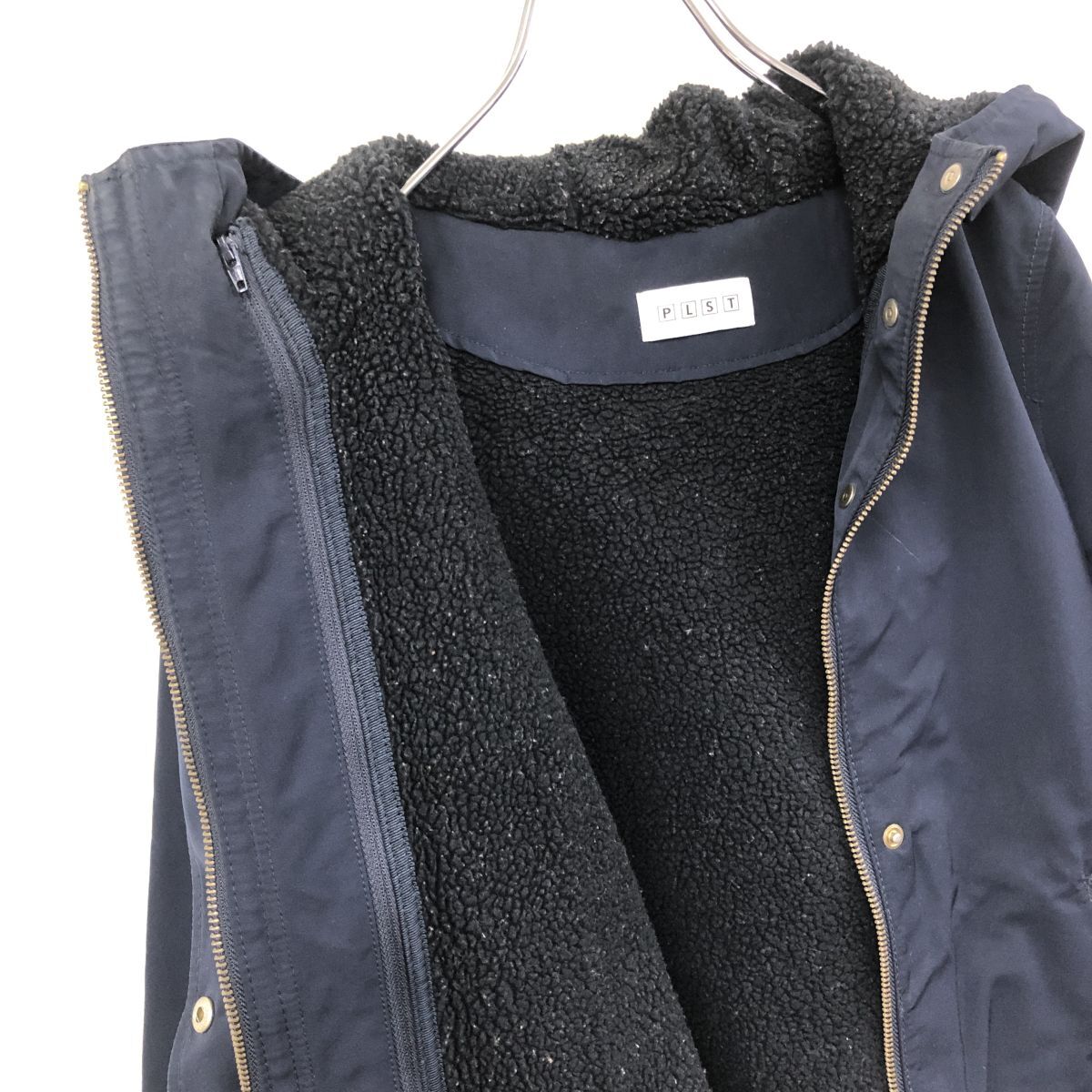 2O3177-G◆ PLST プラステ ボアライナー付ジップアップフーデッドジャケット ジャンパー フーディ 2way ◆ sizeS ネイビー ポリエステル