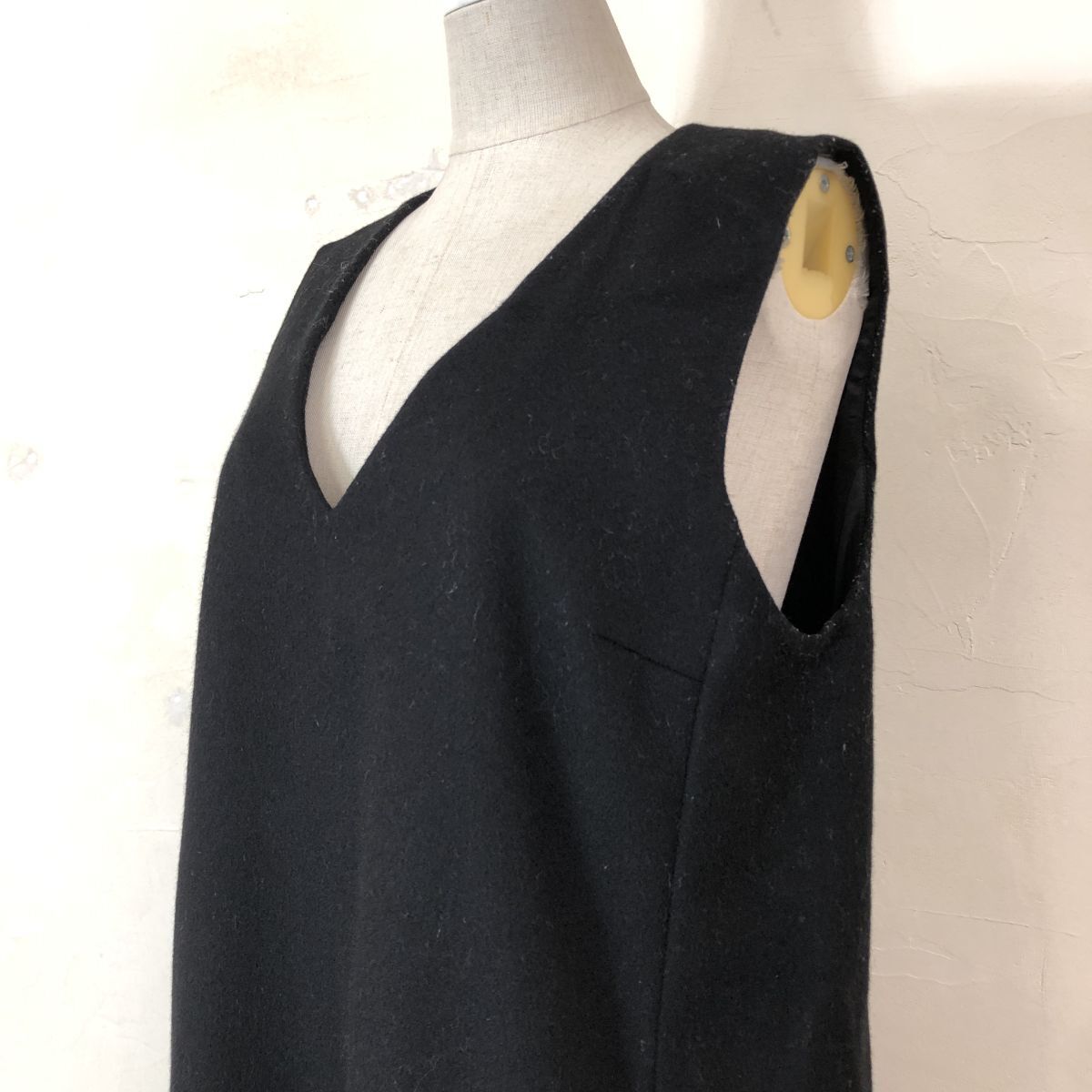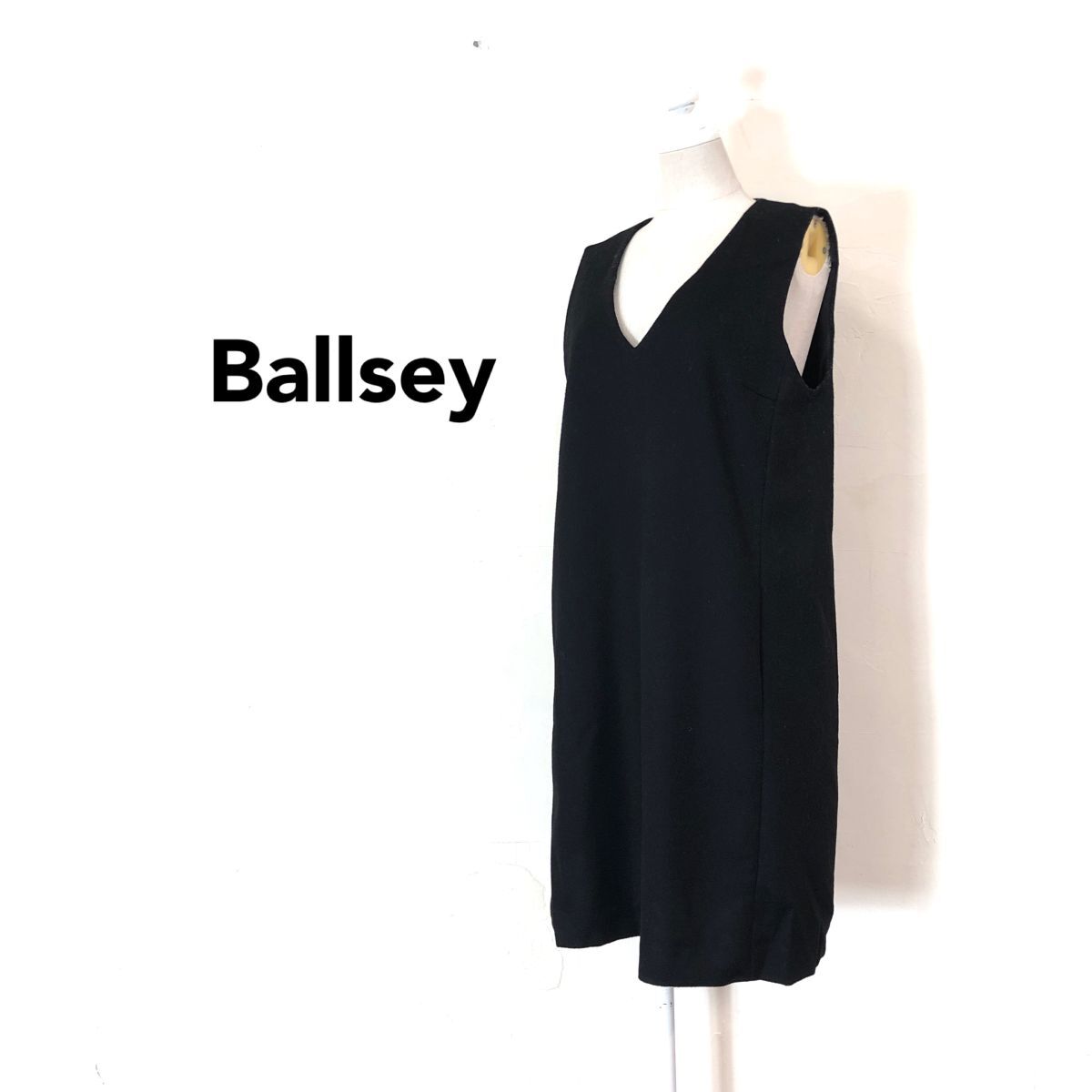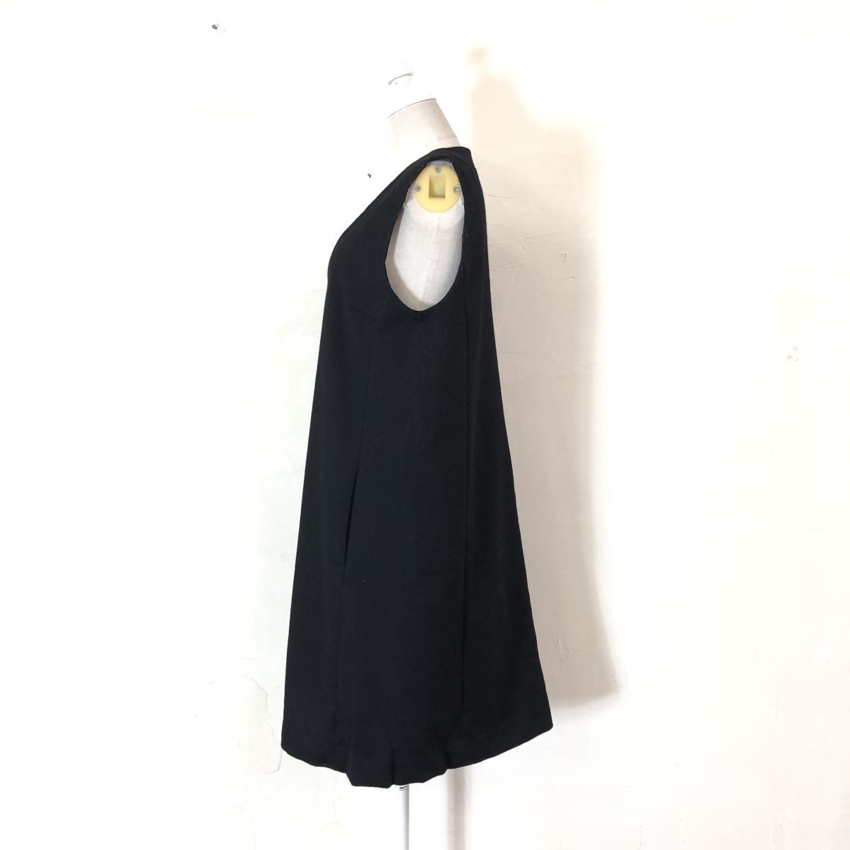 2N1079-Y◆Ballsey ボールジー Vネックノースリーブワンピース ジャンパースカート 重ね着 膝上 カシミヤ混 裏地 ◆size38 ブラック ウール