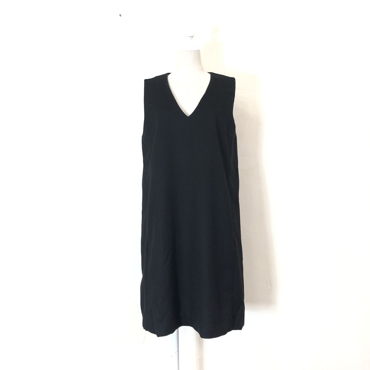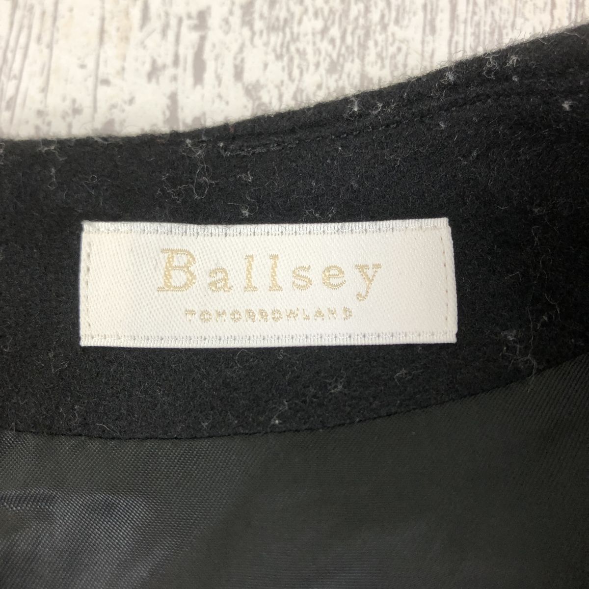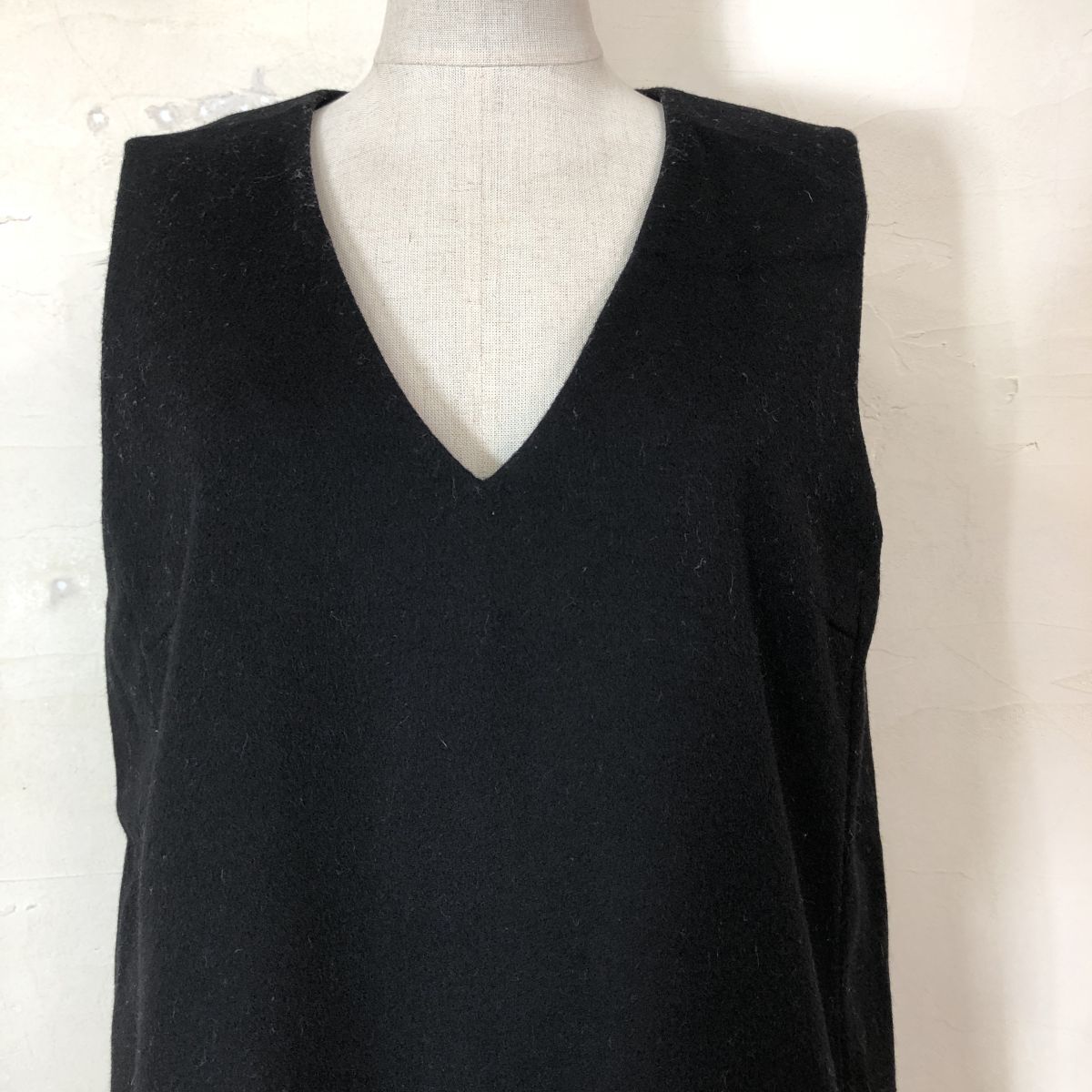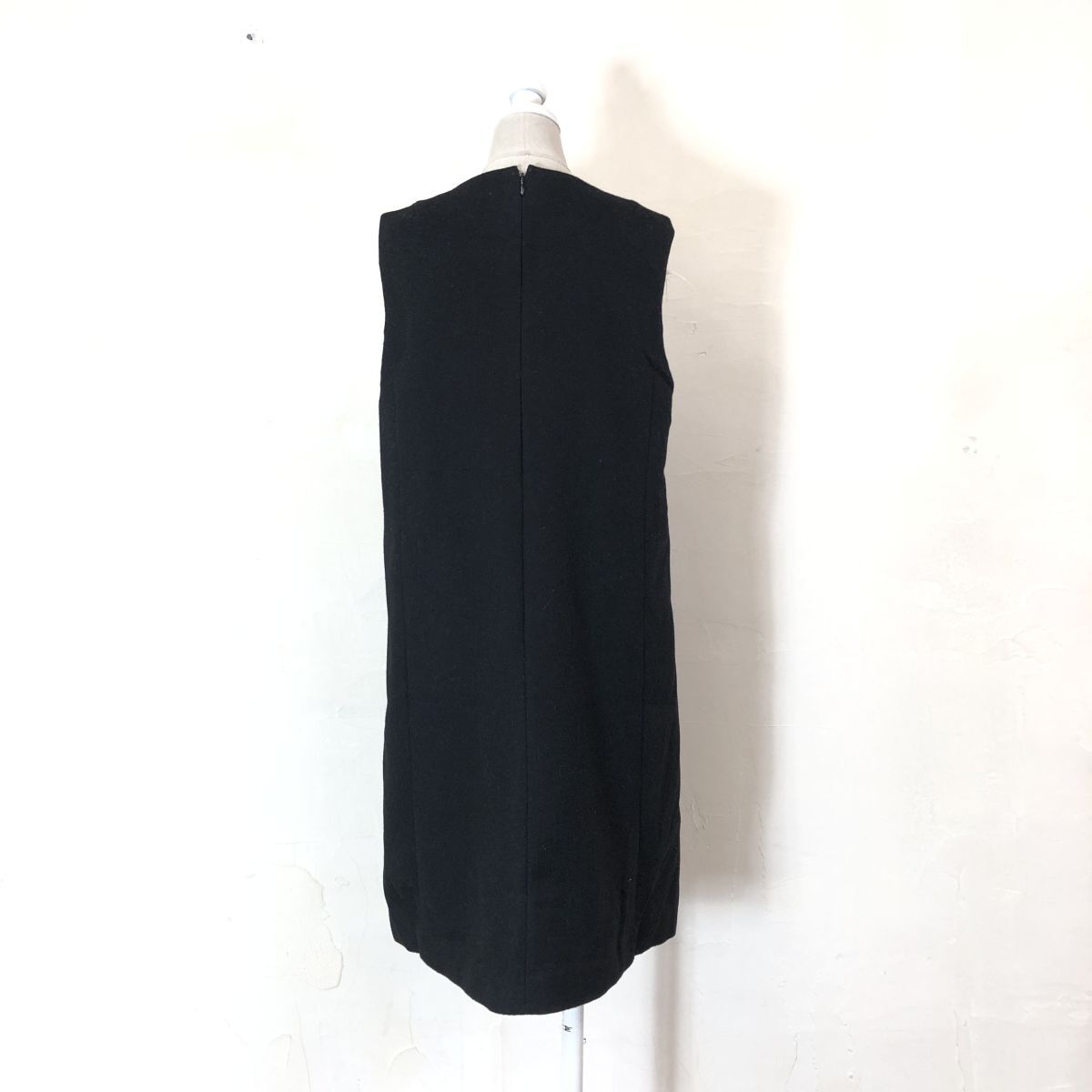 2N1079-Y◆Ballsey ボールジー Vネックノースリーブワンピース ジャンパースカート 重ね着 膝上 カシミヤ混 裏地 ◆size38 ブラック ウール
