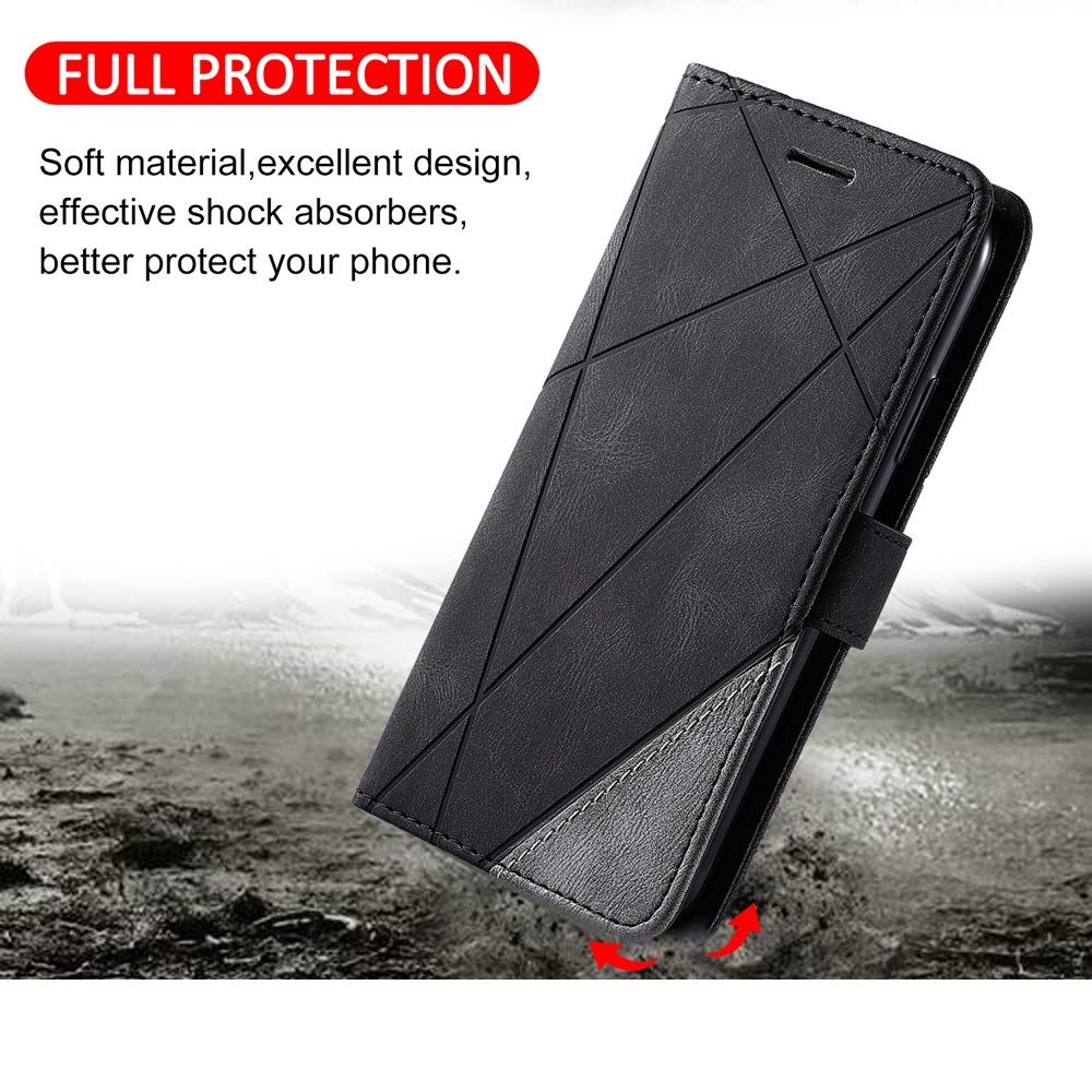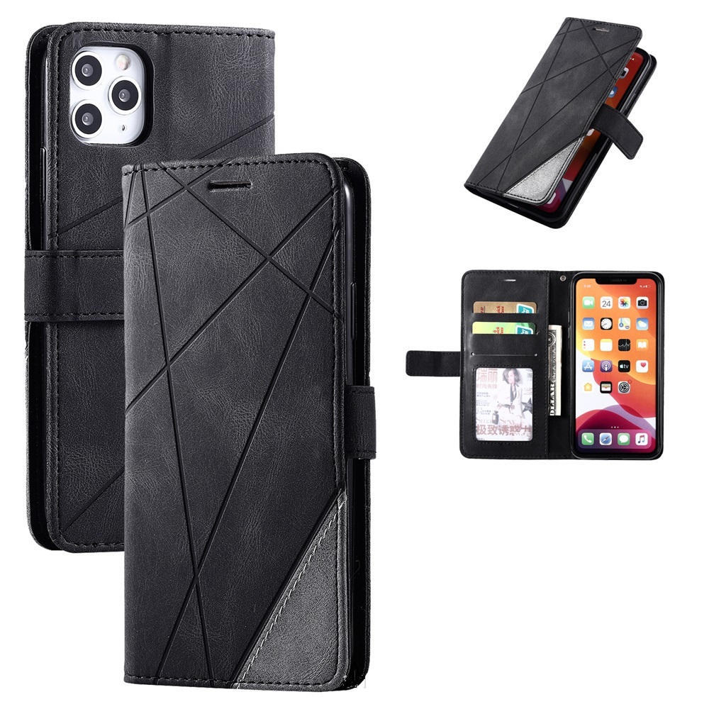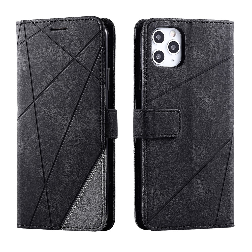 iPhone 15 ブラック 手帳型 レザー ケース カード,写真入&内ポケット ストラップ付 (格子柄)